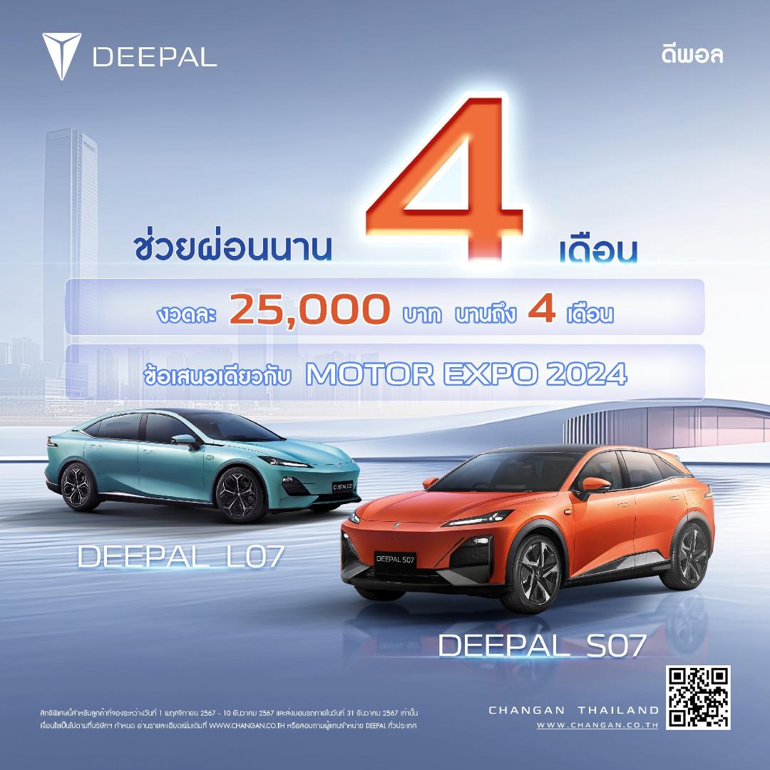 โดยแคมเปญสุดพิเศษในช่วง Motor Expo 2024 และช่วงสิ้นปีที่กำลังจะมาถึง มอบสิทธิพิเศษให้กับลูกค้าทุกท่านที่ซื้อรถยนต์ DEEPAL S07, DEEPAL S07 L และ DEEPAL L07 สุดคุ้ม! รับโปรโมชั่น 2 ต่อดังนี้