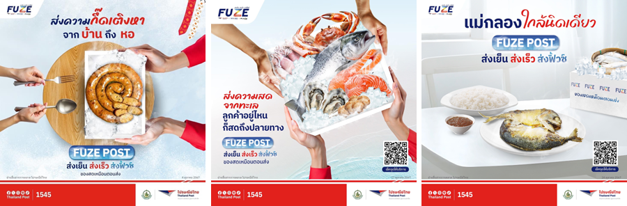 กรุงเทพฯ 7 พฤศจิกายน 2567 – บริษัท ไปรษณีย์ไทย จำกัด เดินหน้าขยายจุดให้บริการส่งของแช่เย็นและแช่แข็งแบบควบคุมอุณหภูมิ ภายใต้บริการ “FUZE POST (ฟิ้วซ์โพสต์)” ผ่านเครือข่ายของไปรษณีย์ไทย ในพื้นที่กรุงเทพฯ ปริมณฑล ล่าสุดนี้ขยายจุดให้บริการรับฝากโดยเพิ่มจุดบริการฟิ้วซ์โพสต์ อีกจำนวน 25 แห่ง พร้อมนำส่งอาหารสด ของแช่แข็งและผลไม้สดทั่วไทย เริ่มให้บริการแล้ววันนี้ ผู้ที่สนใจสามารถเข้าชมรายละเอียดเพิ่มเติมได้ที่ thailandpost.co.th