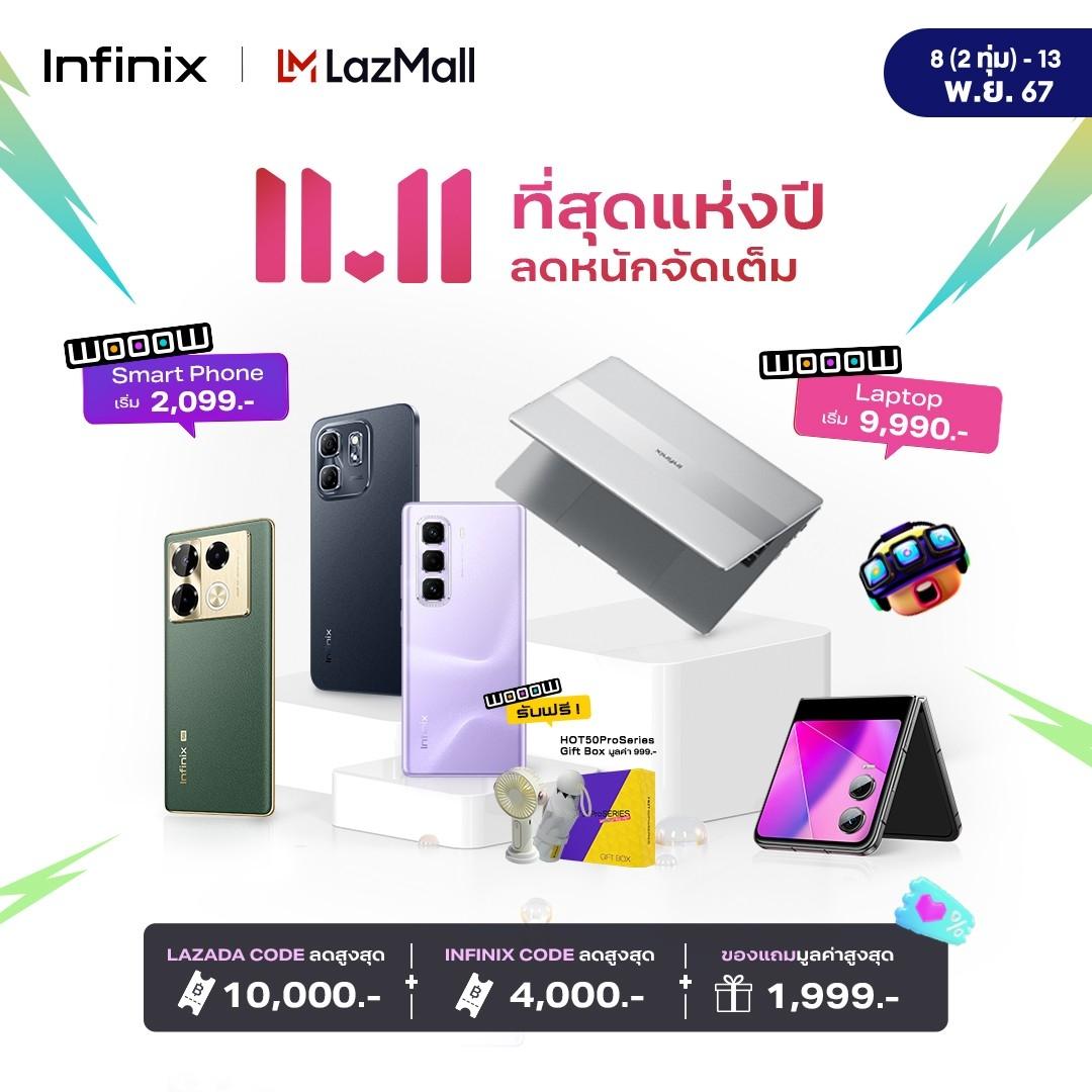 กรุงเทพฯ 7 พฤศจิกายน 2567 - Infinix (อินฟินิกซ์) แบรนด์สมาร์ทโฟนระดับโลกราคาคุ้มค่า ครบครันทุกการใช้งาน และตอบโจทย์ไลฟ์สไตล์คนรุ่นใหม่ ส่งโปรแรงแห่งปีกับแคมเปญ 11.11 พาเหรดสมาร์ทโฟนและแล็ป