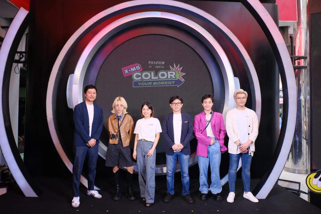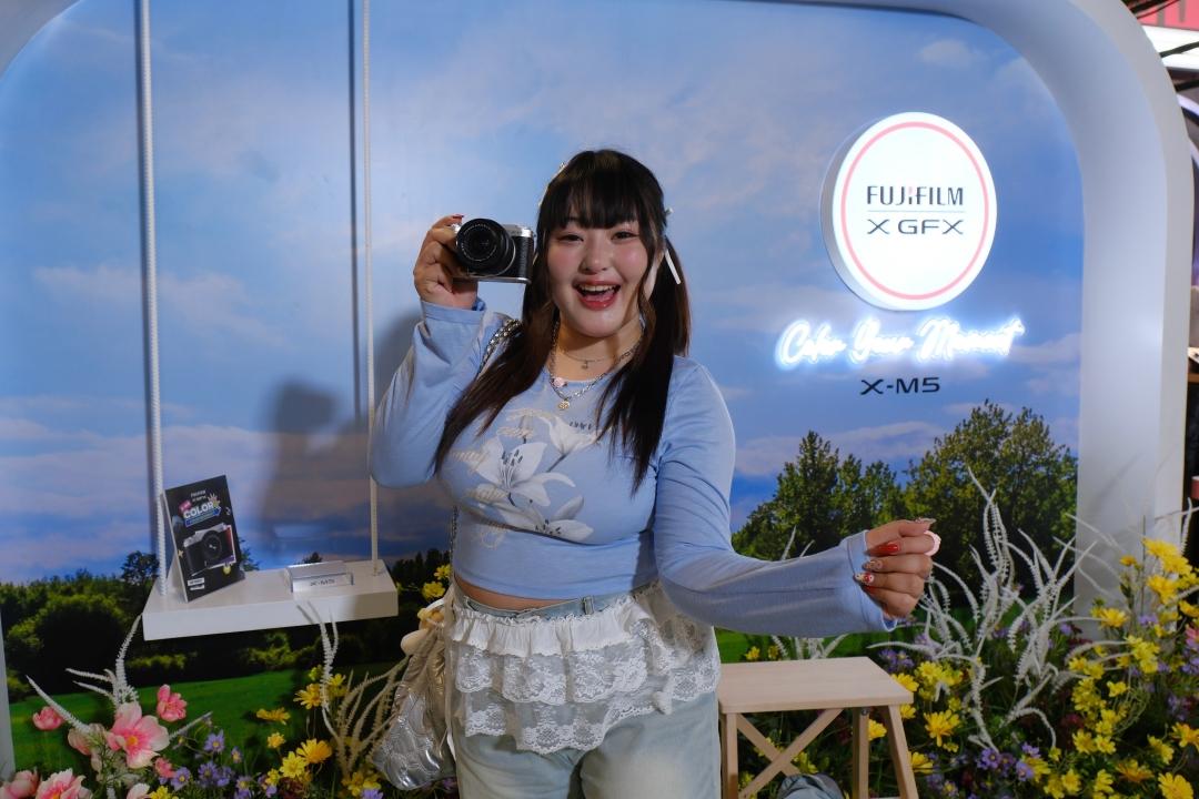 บรรยากาศภายในอีเวนต์ Fujifilm X-M5: Color Your Moment รอบสื่อมวลชนเต็มไปด้วยความสนุกสนานและ อัดแน่นด้วยโชว์พิเศษจากฟูจิฟิล์มในคอนเซปต์ “Your One Day Lifestyle by Fujifilm” โดยมี“Jaymeen (เจมีน-จรัสรวี)” ศิลปินและไลฟ์สไตล์อินฟลูเอนเซอร์สุดเท่ที่เชื่อในเสน่ห์ของการเก็บทุกโมเมนต์พิเศษของชีวิต และ “อะตอม ปกรณ์ (Atompakon)” อาร์ติสต์และครีเอเตอร์ชื่อดัง มาร่วมแชร์ประสบการณ์การใช้งานกล้อง Fujifilm X-M5 พร้อมเผยฟังก์ชันที่ชื่นชอบ นอกจากนี้ ทั้งสองคนยังบอกเล่าทริคดี ๆ ในการครีเอตคอนเทนต์ที่น่าจดจำด้วยกล้องที่ใช้งานง่ายและพร้อมเชื่อมต่อกับสมาร์ตโฟนและโซเชียลมีเดียได้อย่างลื่นไหลไม่มีสะดุด อีเวนต์สุดพิเศษยังมีเจ้าของเพจดังและเหล่าอินฟลูเอนเซอร์มาร่วมสัมผัสฟังก์ชันสุดปังของกล้องตัวดังกันอย่างสนุกสนาน ไม่ว่าจะเป็น “เราตาย ภาพยังอยู่” เพจพาเที่ยวที่เล่าการเดินทางผ่านภาพสุดสวยในโทนฟิล์มเป็นเอกลักษณ์, “Intend to Travel: สัญญาจะตั้งใจเที่ยว” ครีเอเตอร์สายเที่ยวที่มักมีเคล็ดลับดี ๆ ในการถ่ายภาพมาแชร์กับผู้ติดตามเสมอ, “หมวย YinxMuayy” อินฟลูฯ สาวกับไลฟ์สไตล์สนุกๆ และลุคสุดคิวต์, ต๊อด-ปนพงศ์ หนุ่มหล่อสุดเท่ และ แบมแบม-นีวิรินทน์ อินฟลูฯ ลุคคูลขวัญใจโลกโซเชียล พร้อมปิดท้ายอีเวนต์สุดพิเศษด้วยมินิคอนเสิร์ตจากวง GOOD MOOD อีกด้วย