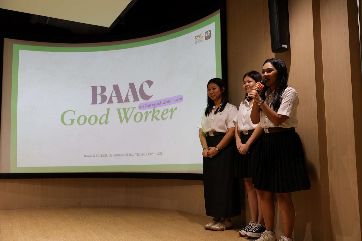 โดยนักศึกษาคณะเทคโนโลยีการเกษตรจาก KMITL ได้รับเชิญเข้าร่วมงาน BAAC x KMITL และภายในงานได้มีการให้ความรู้ทั้งหมด 3 หัวข้อ จากวิทยากรผู้มีความชำนาญในด้านนั้น ๆ เพื่อให้น้อง ๆ นำความรู้เหล่านี้ไปสร้างสรรค์ผลงานเพื่อชิงรางวัล โดยมีแต่ละหัวข้อดังนี้