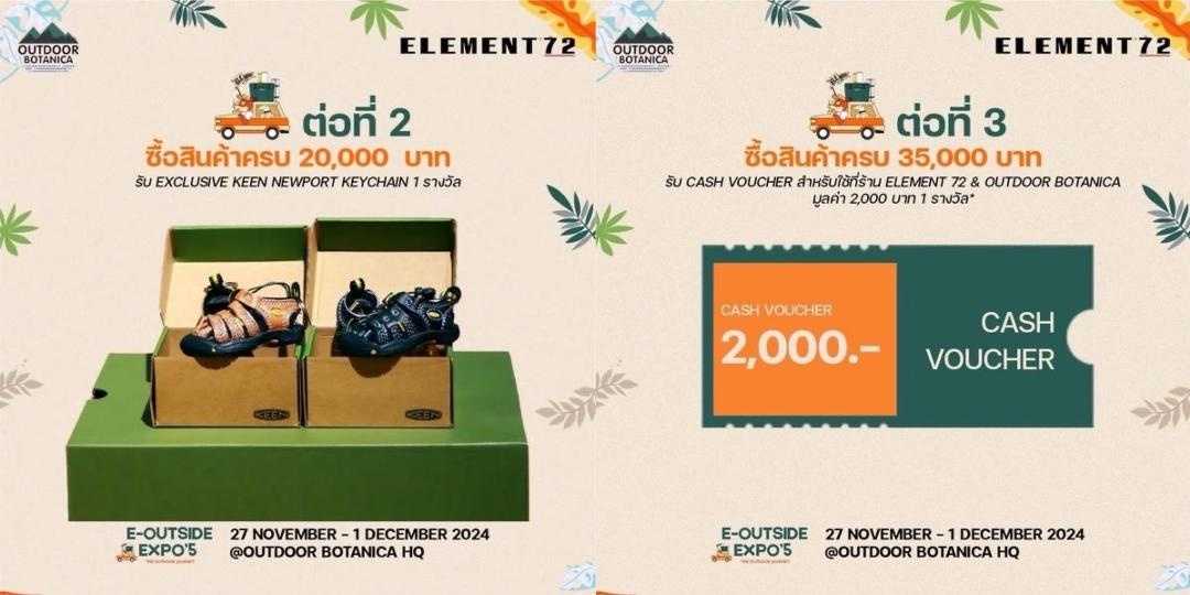• ต่อที่ 3: ช้อปครบ 35,000 บาท รับทันที Cash Voucher มูลค่า 2,000 บาท สำหรับใช้ที่ Element 72 และ Outdoor Botanica