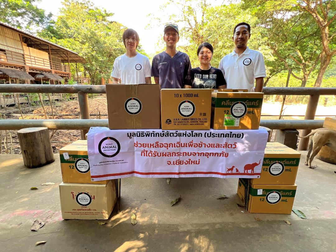 ซึ่งประกอบด้วยปัจจัยพื้นฐานที่จำเป็นเร่งด่วน เช่น อาหารเม็ดสำหรับช้าง ข้าวสาร อาหารแห้ง ของใช้ และอุปกรณ์ทำความสะอาด ฯลฯ โดยดำเนินการแล้วเสร็จในช่วงวันที่ 9-10 ตุลาคม และ 27-28 ตุลาคม ความช่วยเหลือดังกล่าวครอบคลุมช้างกว่า 200 ตัว ในปางช้าง 17 แห่ง
