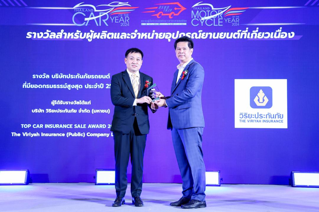 สำหรับ รางวัล “TOP CAR INSURANCE SALE AWARD 2024” เป็นรางวัลที่มอบให้กับกลุ่มธุรกิจประกันภัยรถยนต์ ที่มีความโดดเด่นทางด้านการตลาด การขาย นวัตกรรม และเทคโนโลยี ตอบโจทย์กับความต้องการของผู้บริโภค โดยมี สมาชิกของสมาคมผู้สื่อข่าวรถยนต์และรถจักรยานยนต์ไทย (สรยท.) เป็นผู้พิจารณา ซึ่งถือเป็นการตอกย้ำว่า วิริยะประกันภัย เป็นแบรนด์ประกันภัยรถยนต์อันดับ 1 ที่ครองใจลูกค้ามาอย่างต่อเนื่อง ด้วยความมุ่งมั่นในการพัฒนาบริการด้านสินไหมทดแทนในทุกขั้นตอน เพื่อให้ลูกค้าทุกท่านได้รับประสบการณ์ความคุ้มค่าสูงสุด ภายใต้แนวคิด “มากกว่าความคุ้มครอง คือ ความคุ้มค่า”