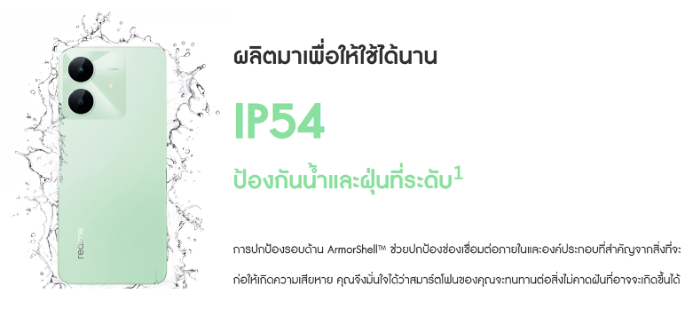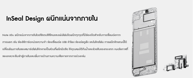 นอกจากความทนทานของตัวเครื่องภายนอก realme Note 60X ยังเสริมความแข็งแกร่งภายใน โดยใช้โครงโลหะเนื้อตันครอบ 4 ด้านบริเวณแผงวงจรหลัก เพื่อเพิ่มความต้านทานต่อการบิดงอได้สูงกว่าโครงทั่วไปถึง 123% พร้อมระบบซับแรงกระแทก InSeal Design ใช้วงแหวนซิลิโคน 7 วงยึดจุดที่วงจรมีการเชื่อมต่อกันเพื่อป้องกันความเสียหายจากการร่วงหล่นและป้องกันไม่ให้สายไฟขาด ผสาน Potting process เพื่อปกป้อง 3 องค์ประกอบหลัก ได้แก่ SOC (ระบบในชิป) DDR (หน่วยความจำ RAM) และ EMMC (ความจุในตัวเครื่อง) ลดปัญหาการเชื่อมต่อวงจรที่ไม่มีประสิทธิภาพและเพิ่มความเสถียรของวงจรได้อย่างมีนัยสำคัญ นอกจากนี้ยังใช้แถบซิลิโคนและแผ่นโฟมปิดผนึกช่องเปิดอย่างมิดชิด ทั้งช่องใส่เมโมรี่การ์ด พอร์ต USB ลำโพง ช่องต่อหูฟัง และไมโครโฟน เสริมคุณสมบัติกันน้ำกันฝุ่นที่ระดับ IP54 และช่วยซับแรงกระแทกได้ดียิ่งขึ้น