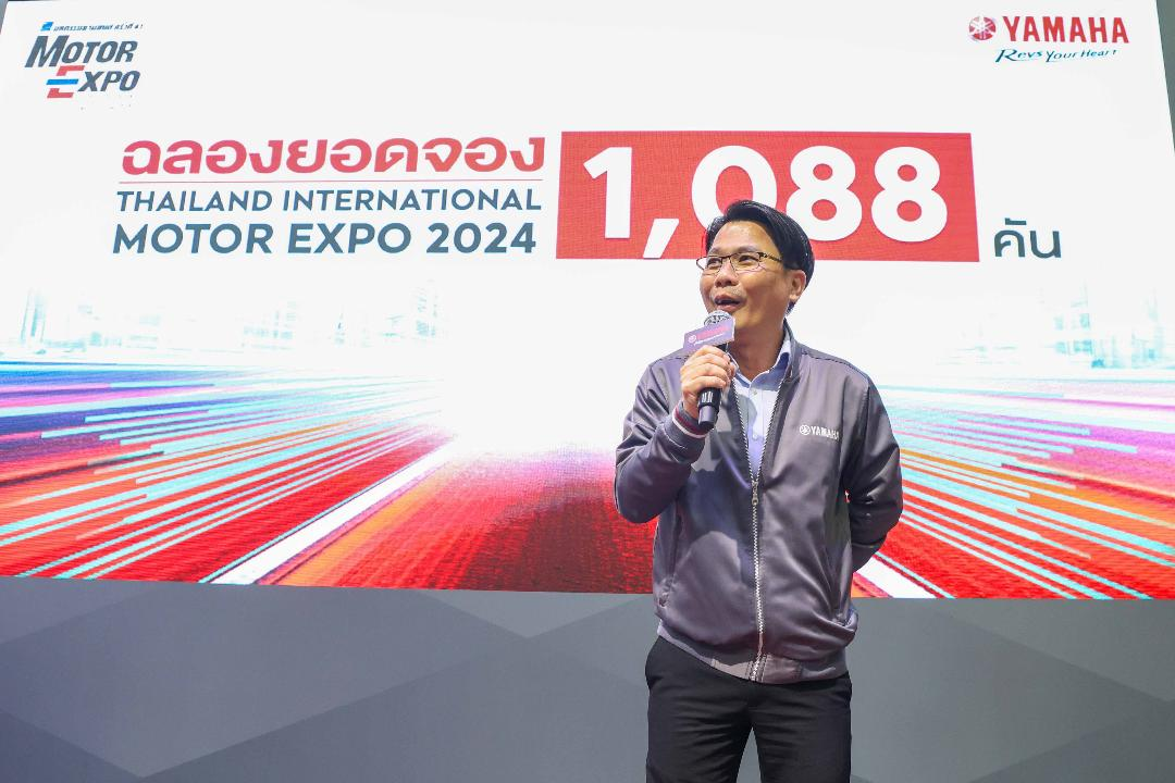 นายภาณุพล กิตติคำรณ ผู้จัดการใหญ่ด้านการค้า นายกัมพล พรสูงส่ง รองผู้จัดการใหญ่ด้านการขาย บริการ และอะไหล่ นายอุกฤษณ์ ภาควิวรรธ รองผู้จัดการใหญ่ด้านวางแผนการค้า และการตลาด บริษัท ไทยยามาฮ่ามอเตอร์ จำกัด ถ่ายภาพร่วมกับพนักงานบริษัทฯ และผู้จำหน่ายรถจักรยานยนต์ยามาฮ่า พื้นที่ กทม. และปริมณฑล ในการฉลองยอดจองรถจักรยานยนต์ยามาฮ่าส่งท้ายปี ในงานมหกรรมยานยนต์ครั้งที่ 44 หรืองาน Thailand International Motor Expo 2024 โดยในปีนี้ยามาฮ่าขนทัพรถจักรยานยนต์พร้อมโปรโมชันเด็ดส่งท้ายปีจนมียอดจองสูงถึง 1,088 คัน พร้อมกันนี้ยังมียอดจำหน่ายอุปกรณ์ตกแต่งพร้อมเครื่องแต่งกายสูงถึง 403,745 บาท และยอดผู้เข้าร่วมชมบูธ YAMAHA Revs With Passion สูงถึง 16,017 คน ที่เข้าร่วมชมรถจักรยานยนต์แห่งอนาคต YAMAHA Y/AI คันเก่งจากซีรีส์ Tokyo Override ทาง Netflix ที่นำมาเปิดตัวครั้งแรกของโลกภายในงานนี้อีกด้วย