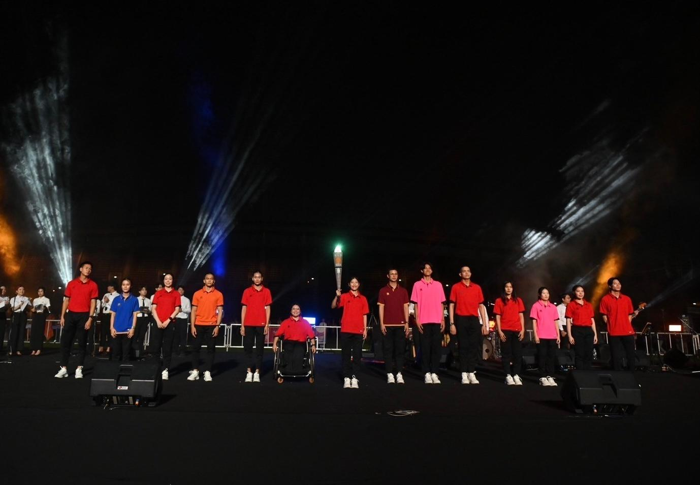 สำหรับความหมายของไฟในกระถางคบเพลิงคือ การเริ่มต้นของการแข่งขันที่มีจิตวิญญาณแห่งความเป็นหนึ่งเดียว ความมุ่งมั่น และการร่วมมือกันของนักกีฬาและผู้เข้าร่วมทุกคน อีกทั้งยังมี “น้องโดม” มาสคอตประจำการแข่งขัน มีต้นแบบมาจากรูปทรงของ ‘แม่โดมท่าพระจันทร์’ ซึ่งเป็น Iconic ของธรรมศาสตร์มาเป็นต้นแบบ เชื่อมโยงสื่อถึงบุคลิกของความเป็นมิตร สดใส แต่แฝงด้วยความแข็งแรง และยังเป็นทั้งเพื่อนที่พร้อมช่วยขับเคลื่อนสังคมที่ทุกคนมีความเข้าใจซึ่งกันและกัน
