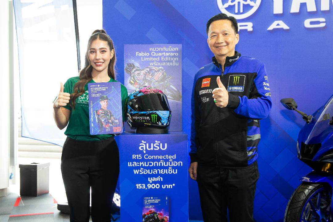 พร้อมกันนี้ยามาฮ่า ยังจัดหนักแคมเปญเด็ดลุ้นรับรถจักรยานยนต์ YAMAHA R15 Connected มูลค่า 118,000 บาท พร้อมหมวกกันน็อก HJC RPHA1 QUARTARARO LE MANS SPECIAL 2024 Limited Edition พร้อมลายเซ็นจาก ฟาร์บิโอ กวาร์ตาราโร่ ให้กับแฟนๆ มอเตอร์สปอร์ตชาวไทย เมื่อซื้อบัตร YAMAHA STAND ทุกที่นั่ง โดยการแถลงข่าวเปิดจำหน่ายบัตรการแข่งขัน MotoGP สนามประเทศไทยในครั้งนี้ มีขึ้น ณ ห้องมัลติฟังก์ชั่น ชั้น 10 อาคาร CW Tower ถ.รัชดา เมื่อเร็วๆ นี้