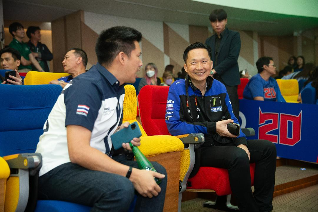 นายพงศธร เอื้อมงคลชัย ประธานกรรมการบริหาร นายภาณุพล กิตติคำรณ ผู้จัดการใหญ่ด้านการค้า นายอุกฤษณ์ ภาควิวรรธ รองผู้จัดการใหญ่ด้านวางแผนการค้า และการตลาด บริษัท ไทยยามาฮ่ามอเตอร์ จำกัด ถ่ายภาพร่วมกับ นายกฤษฎา ตันเทอดทิตย์ เลขานุการรัฐมนตรีว่าการกระทรวงการท่องเที่ยวและกีฬา ดร.ก้องศักด ยอดมณี ผู้ว่าการการกีฬาแห่งประเทศไทย นายโชติชนก ชิดชอบ ผู้อำนวยการฝ่ายกิจกรรมต่างประเทศ สนามช้าง อินเตอร์เนชั่นแนลเซอร์กิต นายพิทักษ์ รัชกิจประการ ประธานเจ้าหน้าที่บริหาร และกรรมการผู้จัดการใหญ่ บริษัท พีทีจี เอ็นเนอยี จำกัด (มหาชน) และมร.มาร์กอส ตอร์โรบา ผู้จัดการด้านการจัดการแข่งขัน ดอร์น่า สปอร์ต เจ้าของลิขสิทธิ์การแข่งขัน ในงานแถลงข่าวการจำหน่ายบัตรชมการแข่งขัน MotoGP สนามประเทศไทย