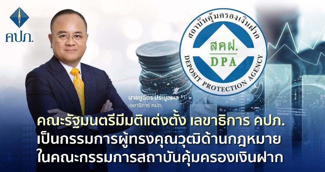 คณะรัฐมนตรีมีมติแต่งตั้ง เลขาธิการ คปภ. เป็นกรรมการผู้ทรงคุณวุฒิด้านกฎหมายในคณะกรรมการสถาบันคุ้มครองเงินฝาก
