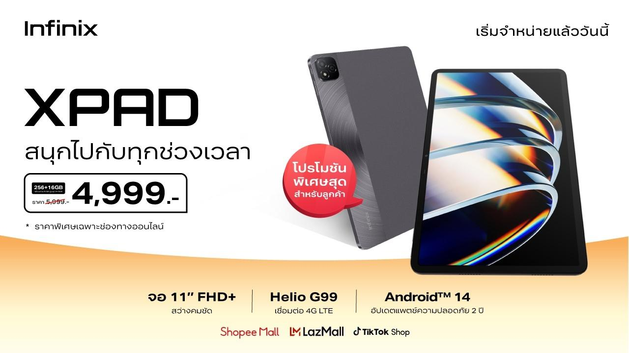 อย่าพลาด! มาสัมผัสความคุ้มค่าของ “Infinix XPAD” แท็บเล็ตตัวท็อปที่ตอบโจทย์ทุกไลฟ์สไตล์ ในราคาสุดคุ้มเพียง 5,999 บาท วางจำหน่ายแล้วผ่านทางช่องทางออนไลน์ และสำหรับ สำหรับช่องทาง BaNANA จะวางจำหน่ายในวันที่ 27 มกราคม 2568 เป็นต้นไป ที่ Shopee: https://cutt.ly/Ce04LccB Lazada: https://s.lazada.co.th/a.ZHGm และ TikTok Shop: https://cutt.ly/1e04KJj5 สุดพิเศษ! สำหรับลูกค้าที่สั่งซื้อ ตั้งแต่วันนี้ – วันที่ 17 มกราคม 2568 รับส่วนลดสุดคุ้มสูงสุด 1,000 บาท