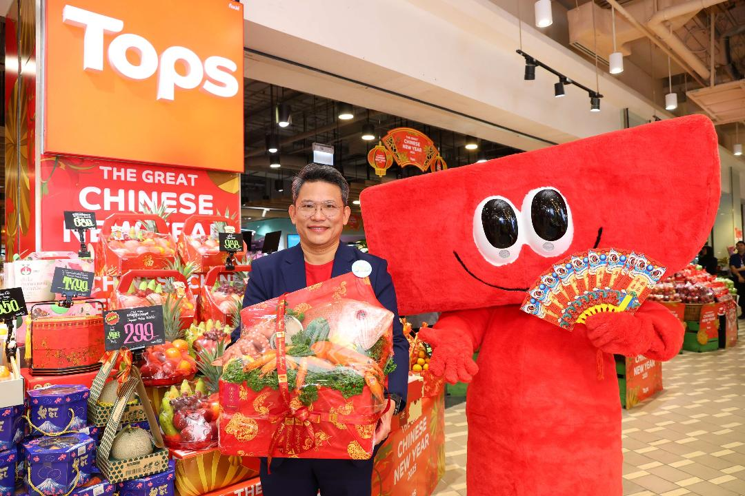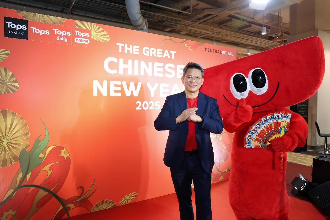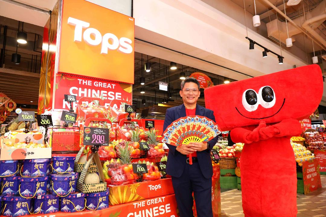 นายจักรกฤษณ์ จตุปัญญาโชติกุล รองกรรมการผู้จัดการฝ่ายการตลาด ประชาสัมพันธ์ และกิจกรรมเพื่อสังคม บริษัท เซ็นทรัล ฟู้ด รีเทล จำกัด ในเครือเซ็นทรัล รีเทล เปิดเผยว่า “เทศกาลตรุษจีนนับเป็นอีกหนึ่งบิ๊กโมเมนตัมของธุรกิจค้าปลีกที่ต่อเนื่องมาจากช่วงปีใหม่ ที่จะสร้างความคึกคักและก่อให้เกิดกิจกรรมทางเศรษฐกิจในภาพรวมทั่วประเทศ โดยในปี 2567 ตลาดค้าปลีกสินค้าอุปโภคบริโภคของไทย มีมูลค่าประมาณ 2 ล้านล้านบาท ฟื้นตัวเต็มที่จากสถานการณ์โควิด-19 โดยคาดการณ์ว่า ตลาดจะเติบโตที่อัตราการเติบโตเฉลี่ยต่อปี (CAGR) ที่ 4.6% ในช่วงปี 2568-2570 ทำให้มูลค่าตลาดขยายตัวเป็น 2.3 ล้านล้านบาท (ที่มา: Euromonitor) ซึ่งในช่วงไตรมาสแรกของปี 2568 นั้น คาดว่าได้รับอานิสงค์จากโครงการกระตุ้นเศรษฐกิจของภาครัฐอย่าง มาตรการ ‘EASY e-RECEIPT’ และภาคการท่องเที่ยวที่ยังคงคึกคักอย่างต่อเนื่อง ท็อปส์ ในฐานะผู้นำเชนธุรกิจซูเปอร์มาร์เก็ตของไทย เล็งเห็นโอกาสในการกระตุ้นภาคการบริโภคของตลาดในช่วงเทศกาลตรุษจีนปีนี้ จึงเดินหน้าจัดแคมเปญใหญ่ครั้งแรกของปี THE GREAT CHINESE NEW YEAR 2025 ต้อนรับปีมะเส็ง ด้วยสารพัดสินค้าและเอ็กซ์คลูซีฟไอเท็มที่หลากหลายและตอบโจทย์ทุกไลฟ์สไตล์ เพื่อให้ท็อปส์ได้เป็นจุดหมายของการจับจ่ายและซื้อสินค้าในช่วงเทศกาลตรุษจีน”
