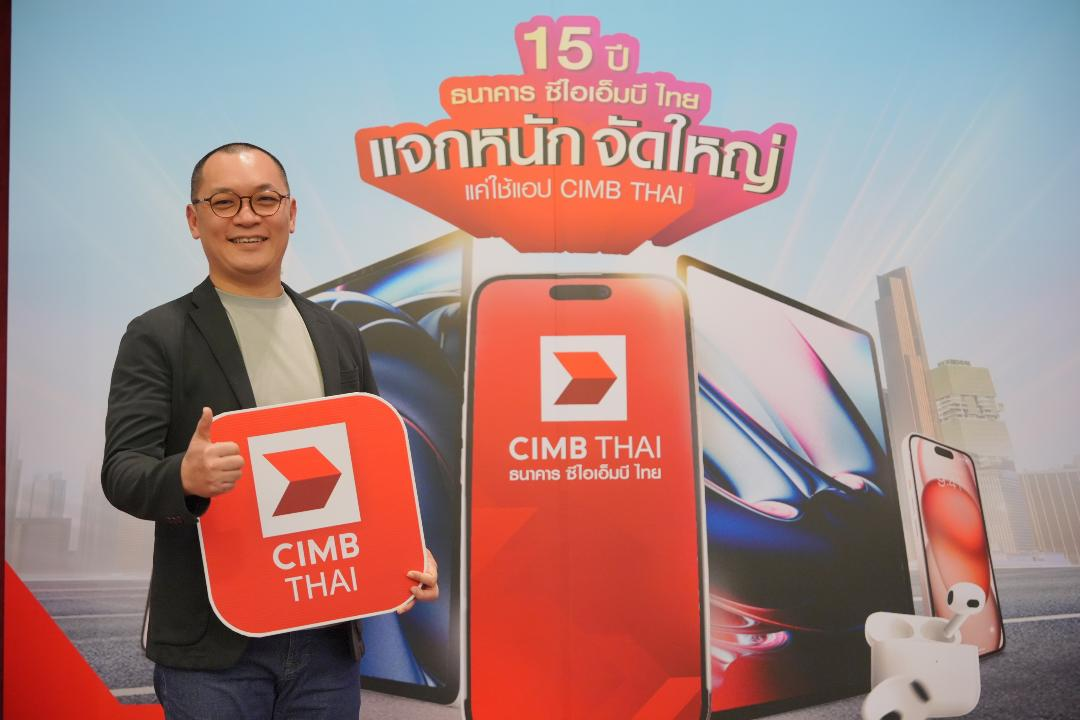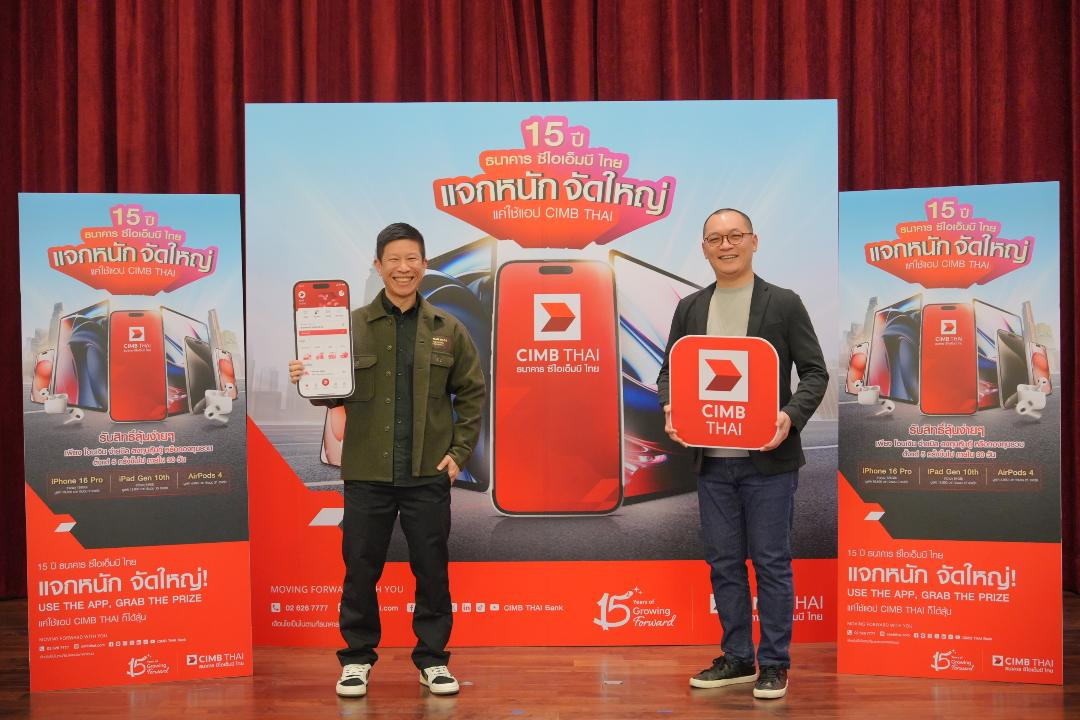 ตัน คีท จิน (ขวา) รองกรรมการผู้จัดการใหญ่ ธุรกิจรายย่อย และกิตติ์ธเนศ พิริยะการสกุล (ซ้าย) Head, Consumer Marketing ธนาคาร ซีไอเอ็มบี ไทย เชิญชวนลูกค้าและประชาชนทั่วไป เข้าร่วมแคมเปญ “15 ปี ธนาคาร ซีไอเอ็มบี ไทย แจกหนัก จัดใหญ่ แค่ใช้แอป CIMB THAI” เพียงทำธุรกรรมการเงิน ไม่ว่าจะเป็น โอนเงิน จ่ายบิล ลงทุนหุ้นกู้ ซื้อกองทุนรวมผ่านแอป CIMB THAI ตั้งแต่ 5 ครั้งขึ้นไป ภายใน 30 วัน ก็รับสิทธิ์ลุ้นเป็นเจ้าของ iPhone 16 Pro (ความจุ 128GB) มูลค่า 39,900 บาท จำนวน 9 รางวัล, iPad Gen 10th (ความจุ 64GB) มูลค่า 12,900 บาท จำนวน 15 รางวัล และ AirPods 4 มูลค่า 4,990 บาท จำนวน 21 รางวัล รวมทั้งหมด 15 รางวัล จับรางวัล 3 ครั้ง เริ่ม 26 พ.ย. 2567– 15 ก.พ. 2568 ลงทะเบียนเพื่อเข้าร่วมกิจกรรม และอ่านรายละเอียดเพิ่มเติมที่ https://bit.ly/4aj49Ii
