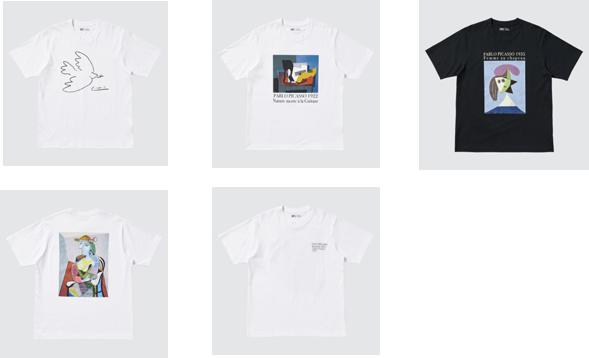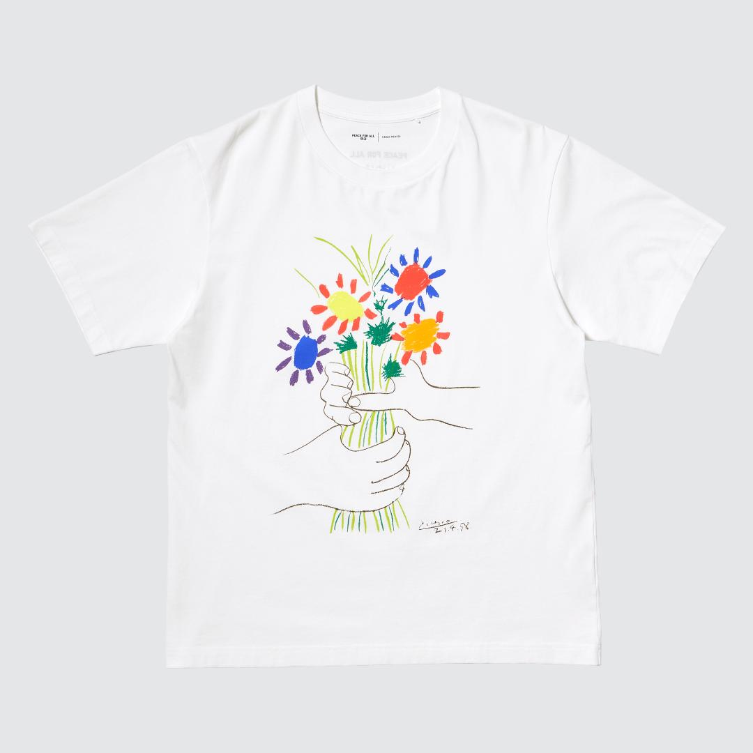 สำหรับคอลเลคชัน UT ประกอบด้วยผลงานภาพวาด 4 ภาพของ Picasso ตั้งแต่ช่วงยุค 1920s ถึงยุค1940s ซึ่งเป็นช่วงเวลาที่ Picasso มีความคิดสร้างสรรค์และความหลากหลายของผลงานมากที่สุด โดยหนึ่งในลวดลายบนเสื้อเป็นผลงานชื่อ Dove of Peace (1949) ภาพนกพิราบสีขาวที่สื่อถึงสัญลักษณ์ของสันติภาพ ซึ่งเป็นภาพที่ได้รับเลือกให้เป็นสัญลักษณ์ของการประชุมสันติภาพนานาชาติครั้งที่ 1 ณ กรุงปารีสในปี 1949 ด้วยโปรเจกต์ PEACE FOR ALL และเสื้อยืด UT ทำให้ผลงานต่างๆ ของ Picasso ที่สนับสนุนเรื่องสันติภาพของโลก ได้รับการสื่อสารออกไปได้มากกว่าแค่ชิ้นงานศิลปะ สร้างความสนใจและความประทับใจให้กับผู้คนมากมายจนถึงปัจจุบัน