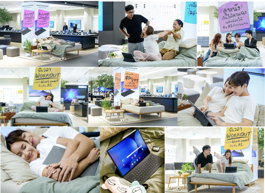 งานนี้ซัมซุงได้เนรมิตโชว์พิเศษ 10 ชั่วโมงเต็ม ภายใต้ธีม "ชีวิตบนเตียงนอนในวันชิลๆ" เป็นการแสดงแบบสมจริง ในช่วงเวลาจริง เพื่อเผยให้เห็นถึงการใช้ชีวิตผ่านกิจกรรมต่าง ๆ ในตลอดทั้งวัน เมื่อคุณมี Galaxy Tab S10 และ AI เข้ามาเป็นตัวช่วยในการทำงานอัตโนมัติ ทำให้ชีวิตของคุณเปลี่ยนจากวันธรรมดาให้เป็นวันที่ไร้ความกังวลเรื่องงาน มีเวลาไปทำกิจกรรมต่าง ๆ ที่ผ่อนคลายมากขึ้น
