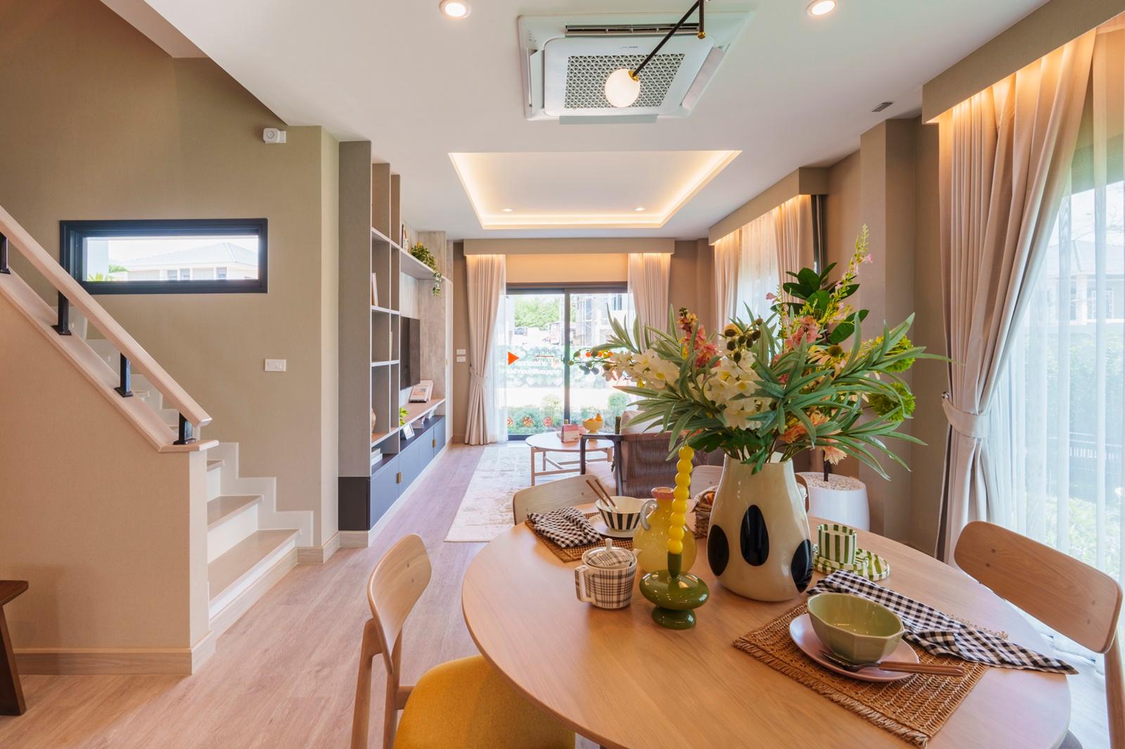 บ้านแนวคิดใหม่บนทำเลที่ผ่อนคลายและใกล้กว่าที่คิด มาพร้อมบ้านเดี่ยว 2 ชั้น บ้านเดี่ยวชั้นเดียว บ้านแฝด และทาวน์โฮม ที่มีให้เลือกถึง 7 แบบ จำนวน 452 ครอบครัว บนพื้นที่กว่า 77 ไร่ ร่วมสัมผัสที่สุดของบ้านแนวคิดใหม่เพื่อคุณภาพการอยู่อาศัยกับ บ้านเดี่ยว 2 ชั้น ดีไซน์สไตล์ทรอปิคอลโมเดิร์น พื้นที่ใช้สอยขนาดใหญ่ 153-261 ตารางเมตร 3-4 ห้องนอน 3-4 ห้องน้ำ 2 ที่จอดรถ ดีไซน์ครอบคลุมทุกฟังก์ชัน ให้มีพื้นที่กว้างมาพร้อมมุมพักผ่อนและให้ทุกตารางนิ้วในบ้านเต็มไปด้วยสเปซที่ปรับเปลี่ยนได้ บ้านเดี่ยวชั้นเดียว พื้นที่ใช้สอย 117 ตารางเมตร 2 ห้องนอน 2 ห้องน้ำ 2 ที่จอดรถ ออกแบบพื้นที่ใช้สอยอย่างลงตัวทั้งภายในและภายนอก โปร่งสบายในสไตล์รีสอร์ท มาพร้อมห้อง Master Bedroom และห้องนั่งเล่น ที่ได้มุมมองวิวสวน บ้านแฝด ฟังก์ชันการใช้งานเทียบเท่าบ้านเดี่ยว 141 ตารางเมตร 3 ห้องนอน 3 ห้องน้ำ 2 ที่จอดรถ ดีไซน์พื้นที่กว้าง ห้อง Master Bedroom พร้อมห้องน้ำในตัว ห้องครัวแบบปิด เป็นสัดส่วน และทาวน์โฮม จัดพื้นที่การใช้ประโยชน์อย่างคุ้มค่า 119 ตารางเมตร 3 ห้องนอน 3 ห้องน้ำ 2 ที่จอดรถ ฟังก์ชันครบ เป็นสัดส่วน ห้องนั่งเล่นขนาดใหญ่เชื่อมต่อส่วนทานอาหารได้อย่างลงตัว โดยทุกแบบบ้านสร้างสรรค์ด้วยวัสดุคุณภาพได้มาตรฐาน ประหยัดพลังงาน พร้อมยกระดับการใช้ชีวิตด้วยพลังงานสะอาด ติดตั้ง Solar Rooftop (เฉพาะบ้านแฝดและบ้านเดี่ยว 2 ชั้น) และเตรียมจุด EV Charger รองรับการใช้รถยนต์ไฟฟ้า (เฉพาะบ้านเดี่ยว 2 ชั้น) สะดวกสบายมากขึ้นด้วย Home Automation & Security