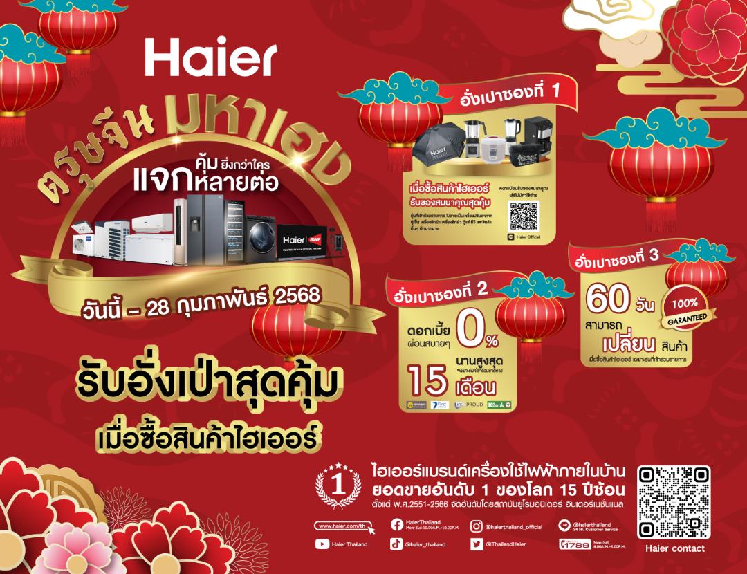 23 มกราคม 2568 – ไฮเออร์ (ประเทศไทย) ผู้นำด้านผลิตภัณฑ์และนวัตกรรมเครื่องใช้ไฟฟ้าระดับโลกและแบรนด์เครื่องใช้ไฟฟ้าอันดับ 1 ของโลกติดต่อกัน 16 ปีซ้อน เปิดศักราชต้อนรับปีมะเส็งในเทศกาลตรุษจีนสุดยิ่งใหญ่ พร้อมขานรับมาตรการกระตุ้นเศรษฐกิจไทย Easy E-Receipt 2.0 ปี 2568 จัดกิจกรรม “ตรุษจีนมหาเฮง แจกหลายต่อ คุ้มยิ่งกว่าใคร” เมื่อซื้อสินค้าไฮเออร์ที่ร่วมรายการ รับเลยอั่งเป่าสุดคุ้มถึง 3 ซอง! ง่าย ๆ ดังนี้