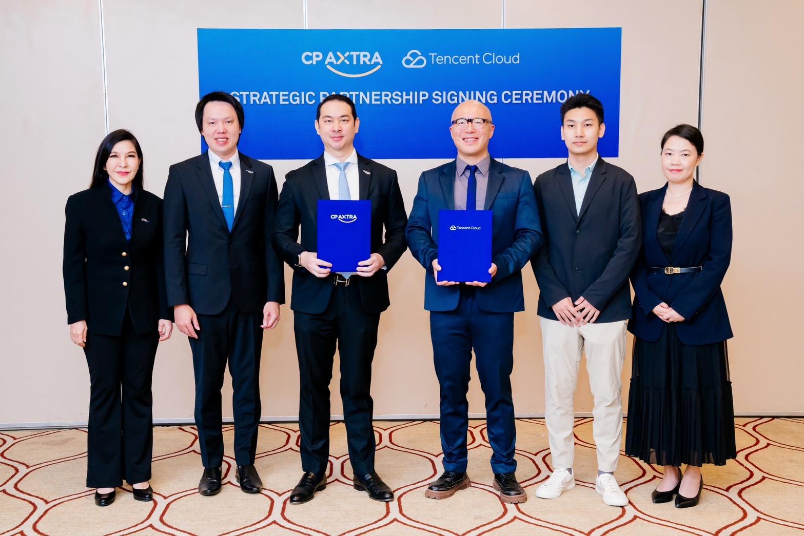 พิธีลงนามบันทึกความเข้าใจระหว่าง เทนเซ็นต์ คลาวด์ และ ซีพี แอ็กซ์ตร้า จัดขึ้นที่กรุงเทพมหานคร เมื่อเร็ว ๆ นี้ โดยมีนาย Jimmy Chen รองประธานกรรมการของบริษัท เทนเซ็นต์ คลาวด์ อินเตอร์เนชันแนล จำกัด และกรรมการผู้จัดการประจำภูมิภาคเอเชียตะวันออกเฉียงใต้ ร่วมลงนามกับ นายธรินทร์ ธนียวัน ประธานคณะผู้บริหารกลุ่มสายงานอีคอมเมิร์ซ และประธานคณะผู้บริหารกลุ่มสายงานเทคโนโลยีและข้อมูล บริษัท ซีพี แอ็กซ์ตร้า จำกัด (มหาชน) โดยพิธีดังกล่าว ได้รับเกียรติจากนาย Zhang Yun Ming รัฐมนตรีช่วยว่าการกระทรวงอุตสาหกรรมและเทคโนโลยีสารสนเทศของจีน และนายประเสริฐ จันทรรวงทอง รองนายกรัฐมนตรีและรัฐมนตรีว่าการกระทรวงดิจิทัลเพื่อเศรษฐกิจเเละสังคม ร่วมเป็นสักขีพยาน