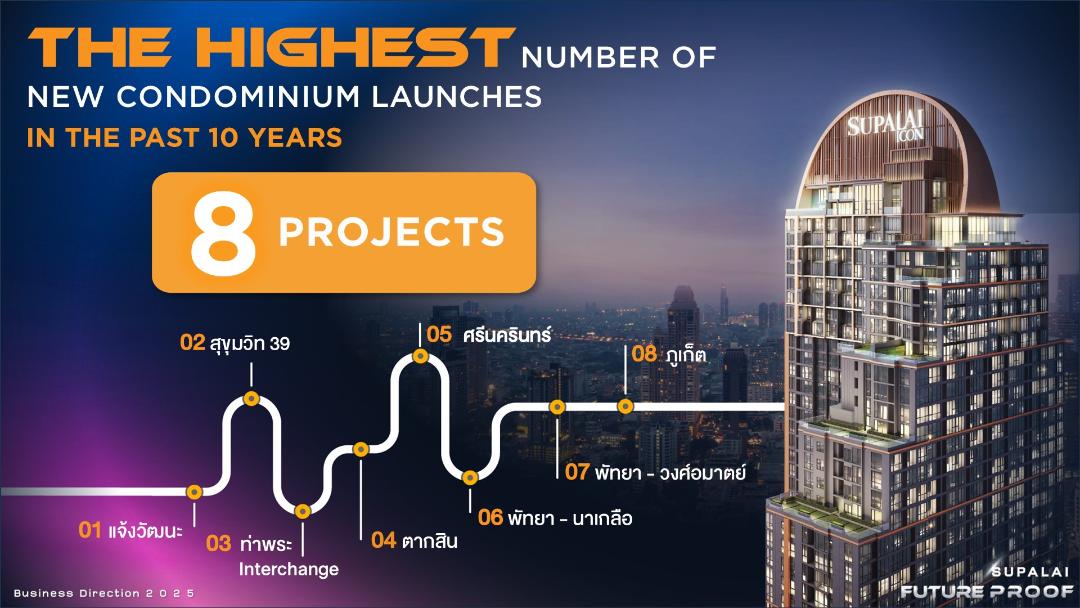 บริษัท ศุภาลัย จำกัด (มหาชน) เผยทิศทางการดำเนินธุรกิจปี 2568 ด้วยกลยุทธ์สำคัญของบริษัทฯ ชูสถานะทางการเงินแข็งแกร่ง รองรับการขยายตัวสู่การเป็น Multi-National Company นำเทคโนโลยีเสริมทัพในการดำเนินธุรกิจ ตั้งเป้ายอดขาย 32,000 ล้านบาท พร้อมเดินหน้าพัฒนาโครงการใหม่ทั้งแนวราบและคอนโดมิเนียม รวม 36 โครงการ ทั้งกรุงเทพฯ ปริมณฑล และภูมิภาค รวมมูลค่า 46,000 ล้านบาท