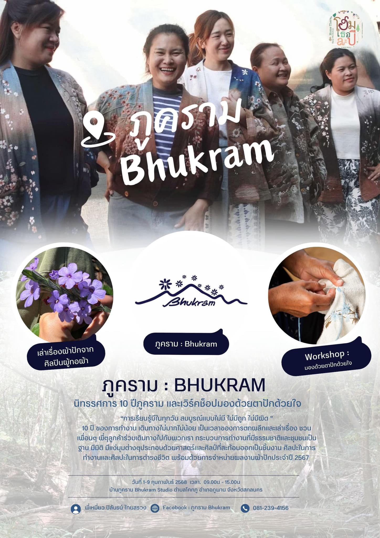 - จัดแสดงผลงานนิทรรศการ 10 ปีภูคราม“Bhukram in 10 years” 10 ปีของการทำงาน เดินทางไม่มากไม่น้อย เป็นเวลาของการตกผลึกและเล่าเรื่อง ชวนทุกคนร่วมเดินทางไปสัมผัสกระบวนการทำงานที่มีธรรมชาติและชุมชนเป็นฐาน มีมิติ มีแง่มุมต่างๆประกอบด้วยศาสตร์และศิลป์ที่สะท้อนออกเป็นชิ้นงาน ศิลปะในการทำงานและศิลปะในการดำรงชีวิต “การเรียนรู้มีในทุกวัน สมบูรณ์แบบไม่มี ไม่มีถูก ไม่มีผิด”