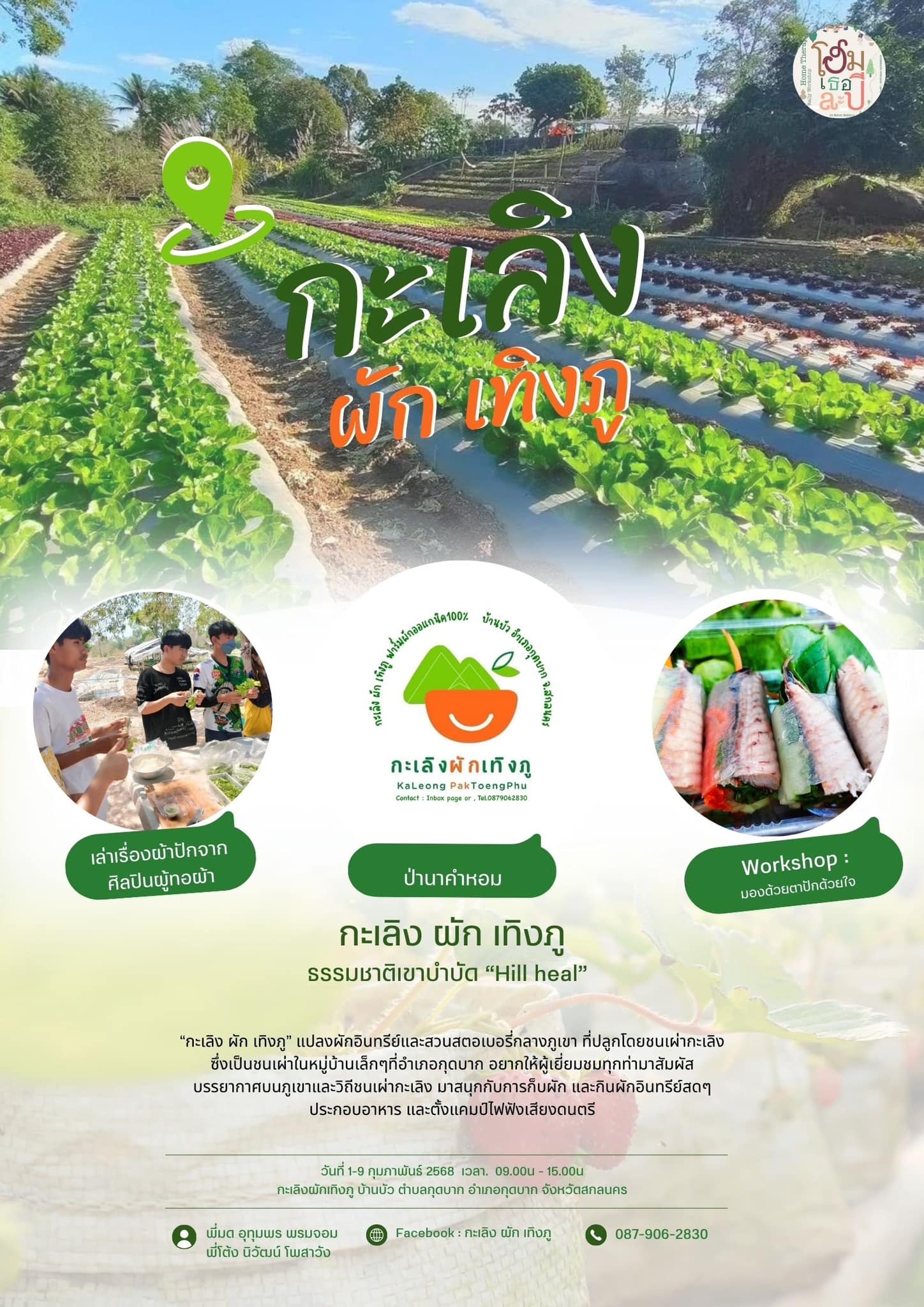 ช่องทางการติดต่อ : Facebook Page : กะเลิง ผัก เทิง ภู หรือ โทร. 087 906 2830 (คุณอุทุมพร พรมจอม)