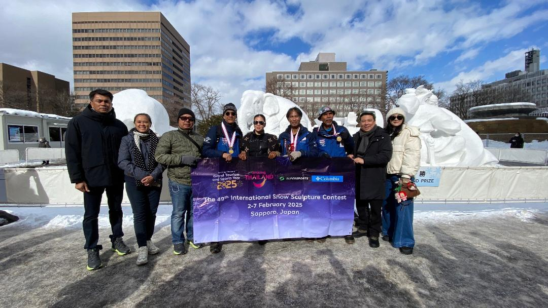การท่องเที่ยวแห่งประเทศไทย (ททท.) ประกาศข่าวดี ทีมนักแกะสลักหิมะตัวแทนประเทศไทย คว้ารางวัล รองชนะเลิศ ในงาน “International Snow Sculpture ครั้งที่ 49” วันที่ 3-7 กุมภาพันธ์ 2568 ณ เมืองซัปโปโร จังหวัดฮอกไกโด ประเทศญี่ปุ่น ด้วยผลงานประติมากรรม “The World Water Festival” ถ่ายทอดเสน่ห์ไทยผ่านเทศกาลสงกรานต์และเรื่องของความผูกพันและอบอุ่นในครอบครัวผ่านช้างแม่ลูก สร้างแรงบันดาลใจให้นักท่องเที่ยวเดินทางมาท่องเที่ยวไทยในปี Amazing Thailand Grand Tourism and Sports Year 2025