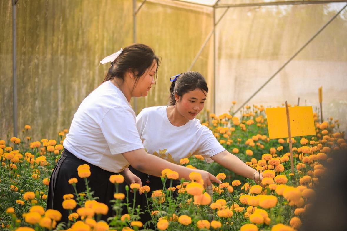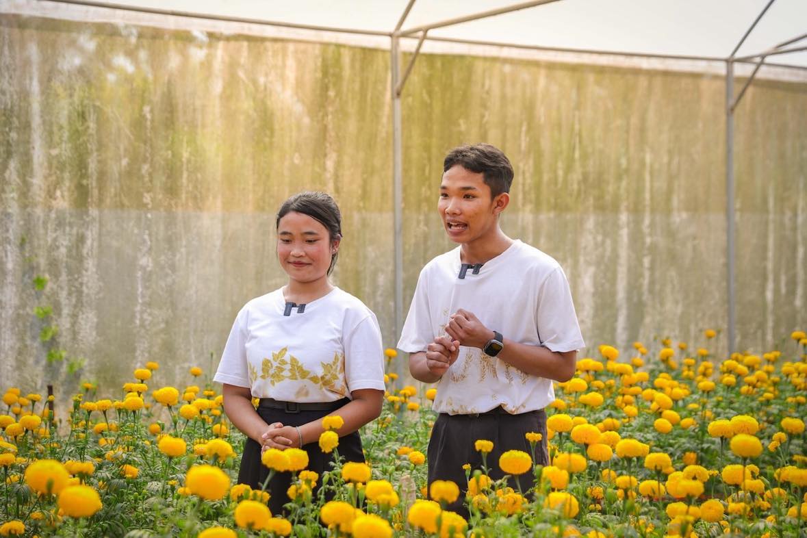 ด้านตัวแทนผู้ประกอบการจิ๋ว “น้องลูกปลา” นส.แก้วตา เต็งมิ่ง นักเรียนชั้นม.5 ตอบด้วยรอยยิ้มว่าหนูชอบรายวิชาการแปรรูปผลิตภัณฑ์จากดาวเรืองเป็นผ้ามัดย้อมและผ้าพิมพ์ลายธรรมชาติ (Eco Print) ตั้งแต่การปลูก ตัด ตากแห้งดอกดาวเรือง ไปจนถึงกระบวนการมัดย้อมค่ะ ที่ชอบเนื่องจากเราได้ออกแบบจินตนาการลายเองจากใบไม้ที่หาได้ในโรงเรียน ซึ่งแต่ละชิ้นที่ออกมาลายจะไม่ซ้ำกัน เห็นผลงานแล้วรู้สึกภูมิใจค่ะ