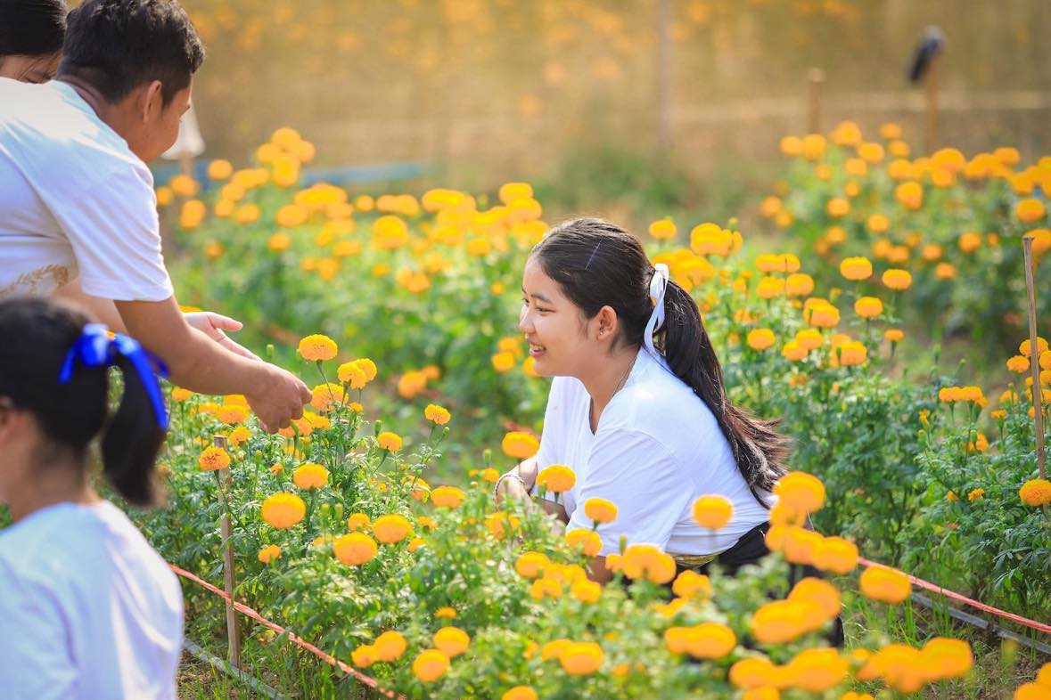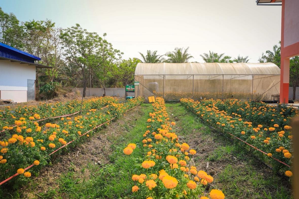 คุณครูอัมพร สุคนเขตร์ ครูชำนาญการพิเศษวิทยาลัยชุมชนสระแก้ว ผู้รับผิดชอบโครงการการพัฒนาการศึกษาและพัฒนาท้องถิ่น กล่าวเสริมเรื่องบรรยากาศการเรียนการสอนว่า ตลอดระยะเวลา 4 เดือน หรืออย่างน้อย 15 สัปดาห์ ในการอบรมหลักสูตรนี้ เด็กๆ จะได้เก็บเกี่ยวความรู้มากมายผ่านการปฏิบัติจริงสู่การสร้างงานสร้างอาชีพได้ในอนาคต โดยหลักสูตรประกอบด้วย 6 รายวิชา ได้แก่ 1.การเพาะปลูกดาวเรือง 2.การแปรรูปผลิตภัณฑ์จากดาวเรืองเป็นของใช้ อาทิ สบู่ แชมพู ครีมบำรุงผิว 3.การแปรรูปผลิตภัณฑ์จากดาวเรืองเป็นอาหารว่าง และเครื่องดื่ม 4.การแปรรูปผลิตภัณฑ์จากดาวเรืองเป็นผ้ามัดย้อมและผ้าพิมพ์ลายธรรมชาติ (Eco Print) 5.หลักการบริหารธุรกิจ 6.การบริหารจัดการตลาดสมัยใหม่ รู้สึกภูมิใจมากๆ ค่ะที่ได้เห็นเด็กๆ ช่วยการพัฒนาสินค้าด้วยสมองสองมือกันด้วยความตั้งใจ