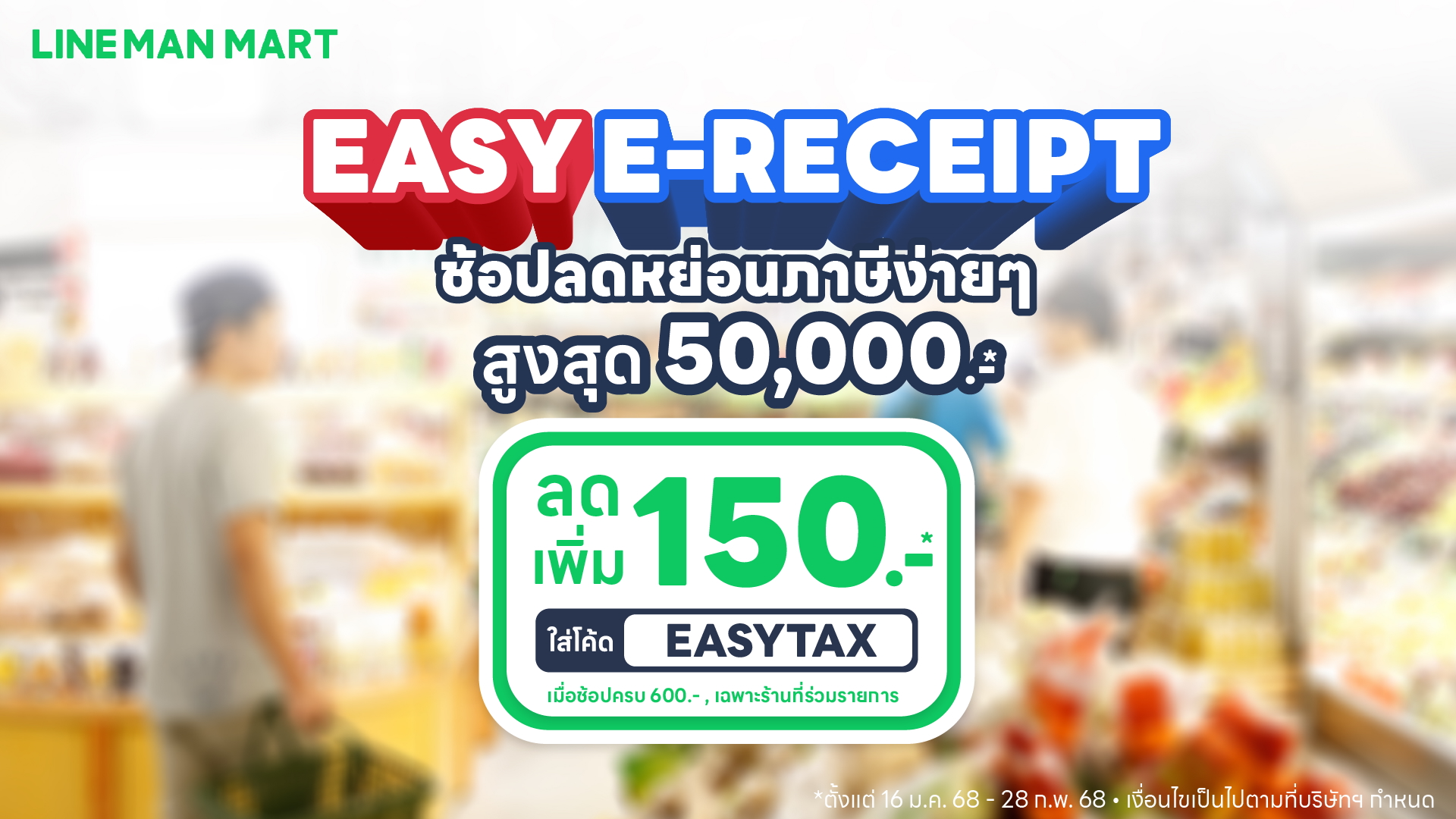 LINE MAN MART ชวนช้อปลดหย่อนภาษี ลดเพิ่ม 20% แจกหนักทั้งลูกค้าเก่า-ใหม่ หนุน Easy E-Receipt 2.0