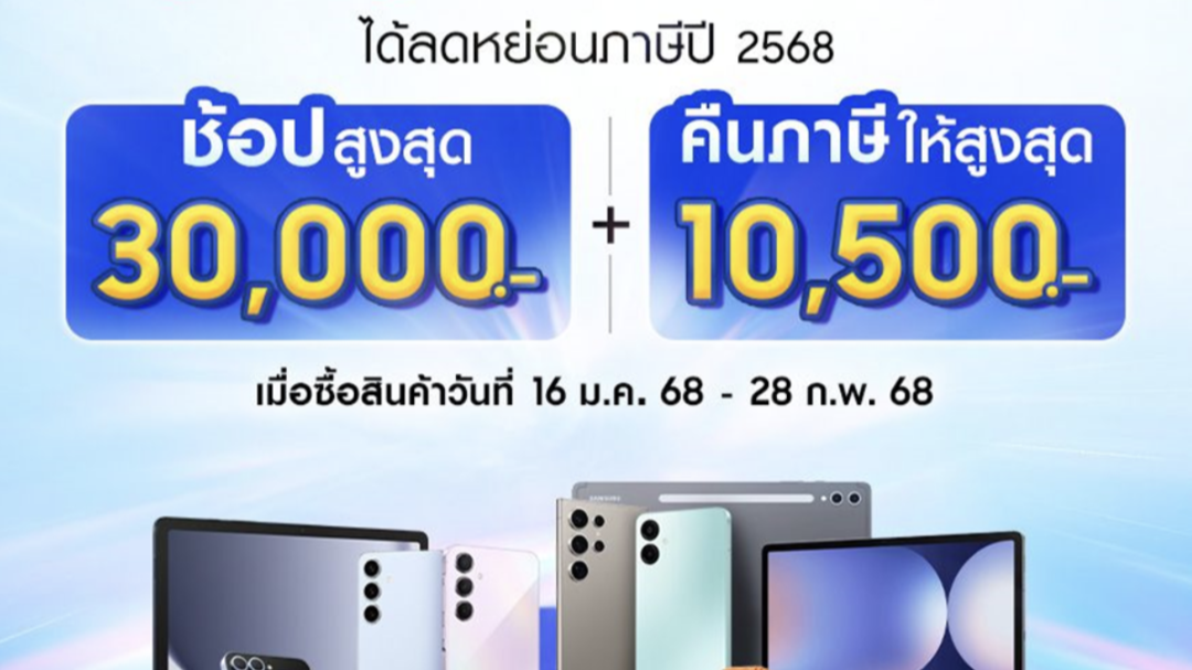ซัมซุง หนุนคนไทยช้อปลดหย่อนภาษีปี 68 ในโครงการ Easy E-Receipt 2.0 รับสิทธิ์ลดหย่อนสูงสุด 10,500 บาท เริ่ม 16 ม.ค. ถึง 28 ก.พ. 68