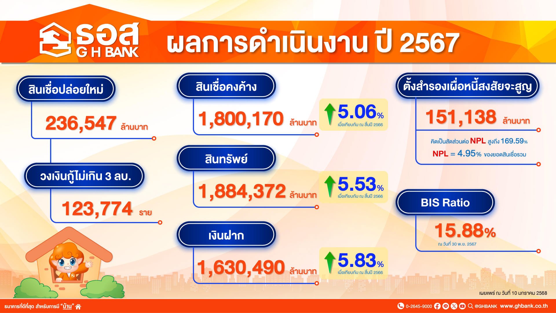 " ธอส. ช่วยคนไทยมีบ้านเพิ่มขึ้น ประกาศผลการดำเนินงาน ปี 2567 ปล่อยสินเชื่อใหม่ได้กว่า 230,000 ล้านบาท ด้าน NPL ลดลงต่อเนื่อง 5 เดือน"