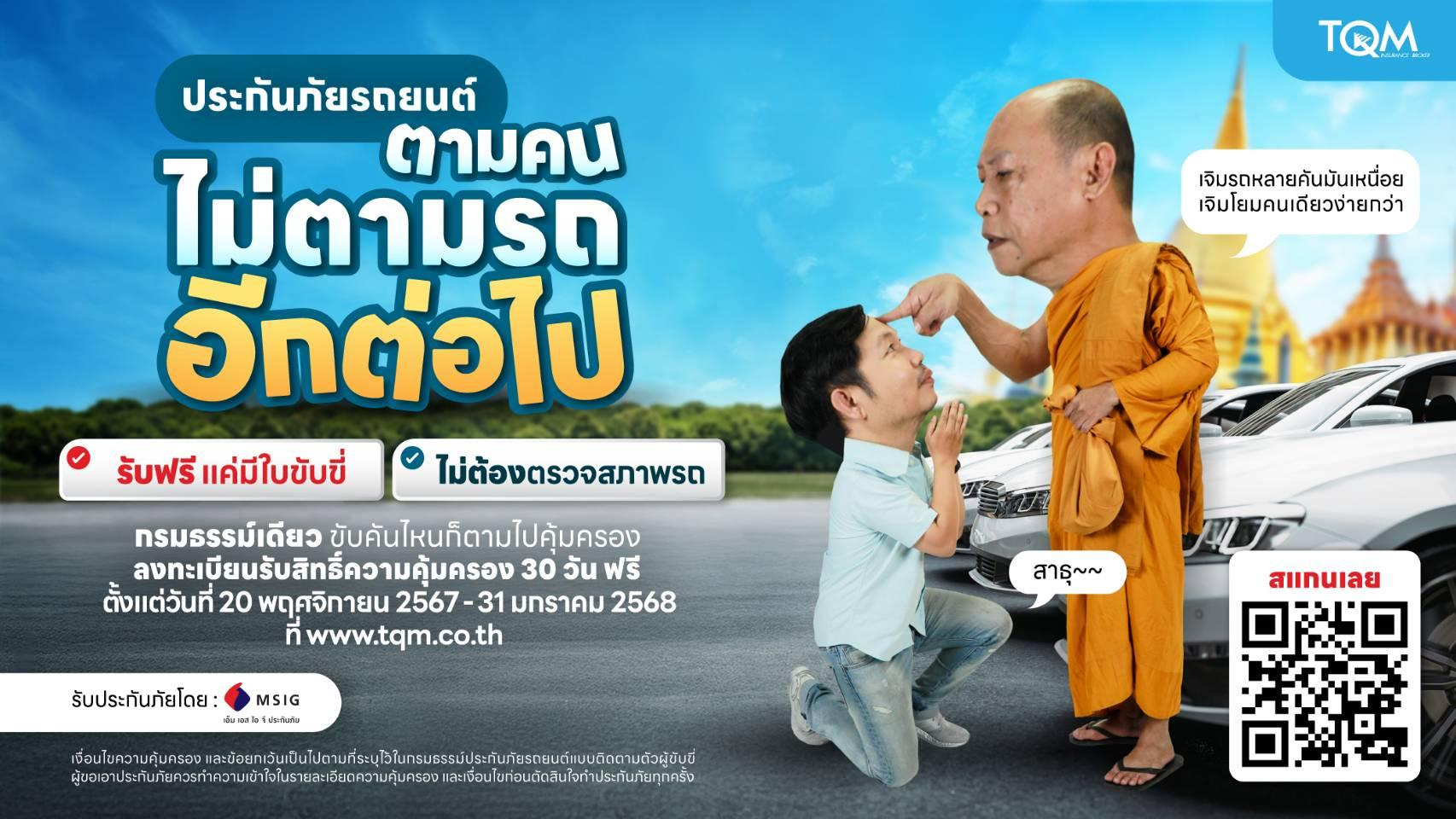 TQM ร่วมกับ MSIG ส่งความสุขท้ายปี มอบฟรี “ประกันภัยรถยนต์ตามคน” ขับคันไหนก็คุ้มครอง