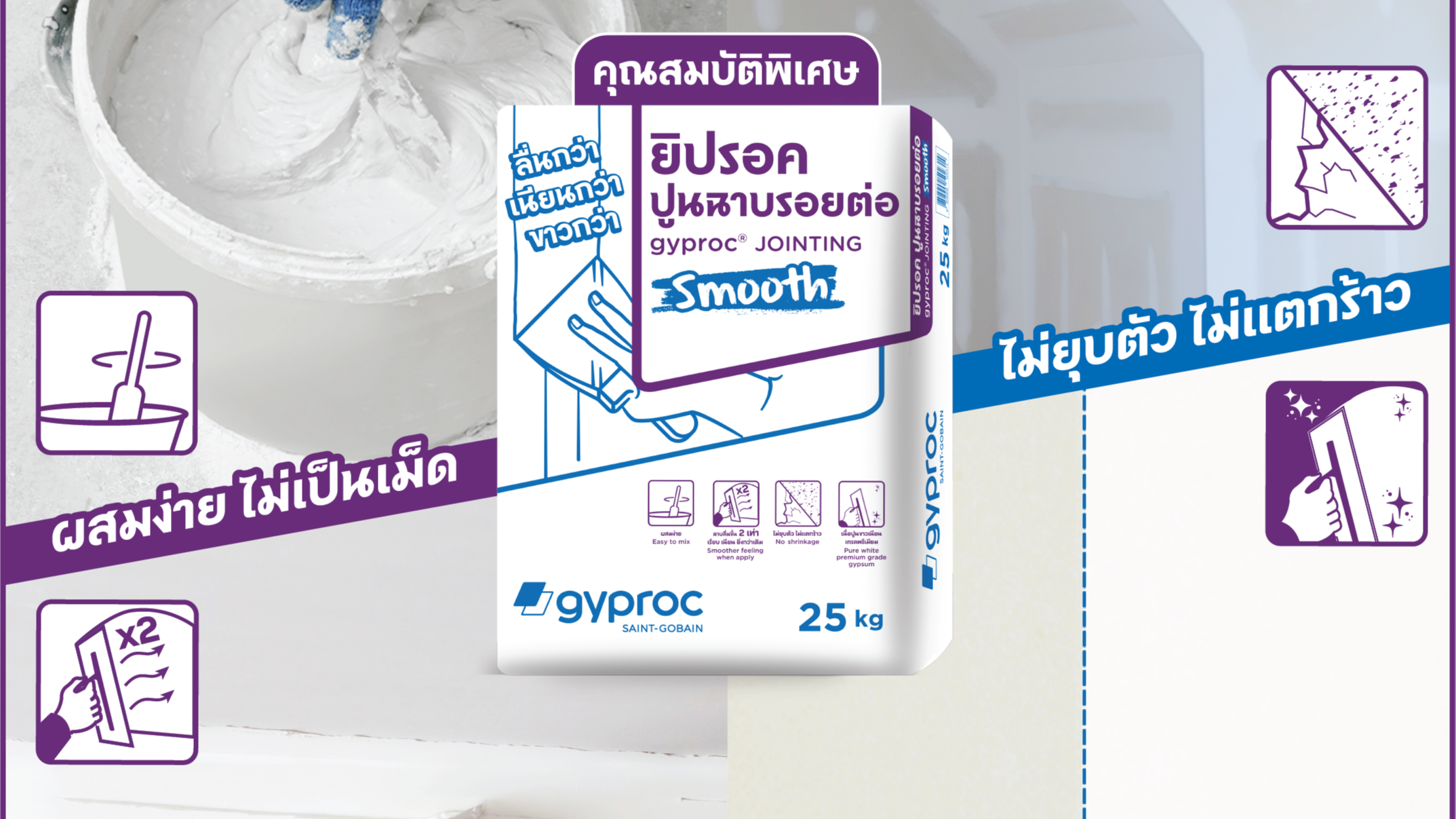 ยิปรอค ดันสินค้านวัตกรรมใหม่ “ปูนฉาบรอยต่อ รุ่น สมูท” ลื่นกว่า ขาวกว่า เนียนกว่า บุกตลาดกลุ่มลูกค้าโครงการ และผู้รับเหมา ทั่วประเทศ ดันยอดขายครึ่งปีหลัง โตก้าวกระโดด