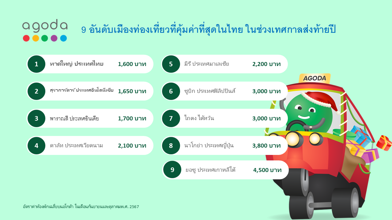 อโกด้าเผย หาดใหญ่คว้าแชมป์เมืองท่องเที่ยวที่คุ้มค่าที่สุดในไทย ช่วงเทศกาลส่งท้ายปี”