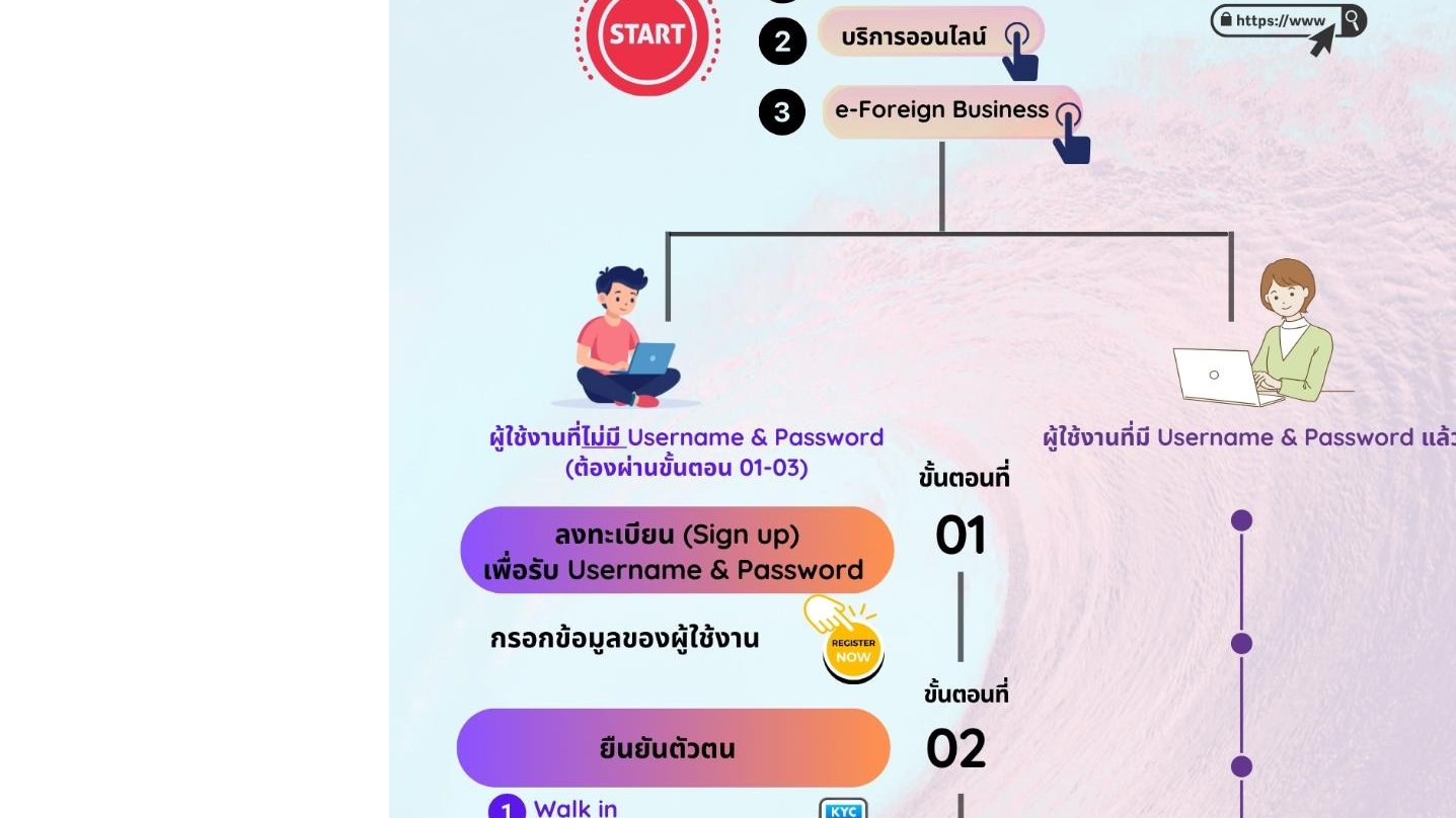 3 เดือน นักลงทุนต่างชาติเข้าใช้บริการ e-Foreign Business เกือบครบ 100% กรมพัฒนาธุรกิจการค้า เดินถูกทาง ...3 เดือน เปิดให้บริการระบบ ‘e-Foreign Business’ มีนักลงทุนต่างชาติและผู้แทนเข้าใช้บริการเกือบครบ 100% แทนการติดต่อเจ้าหน้าที่ (Walk in) อำนวยความสะดว