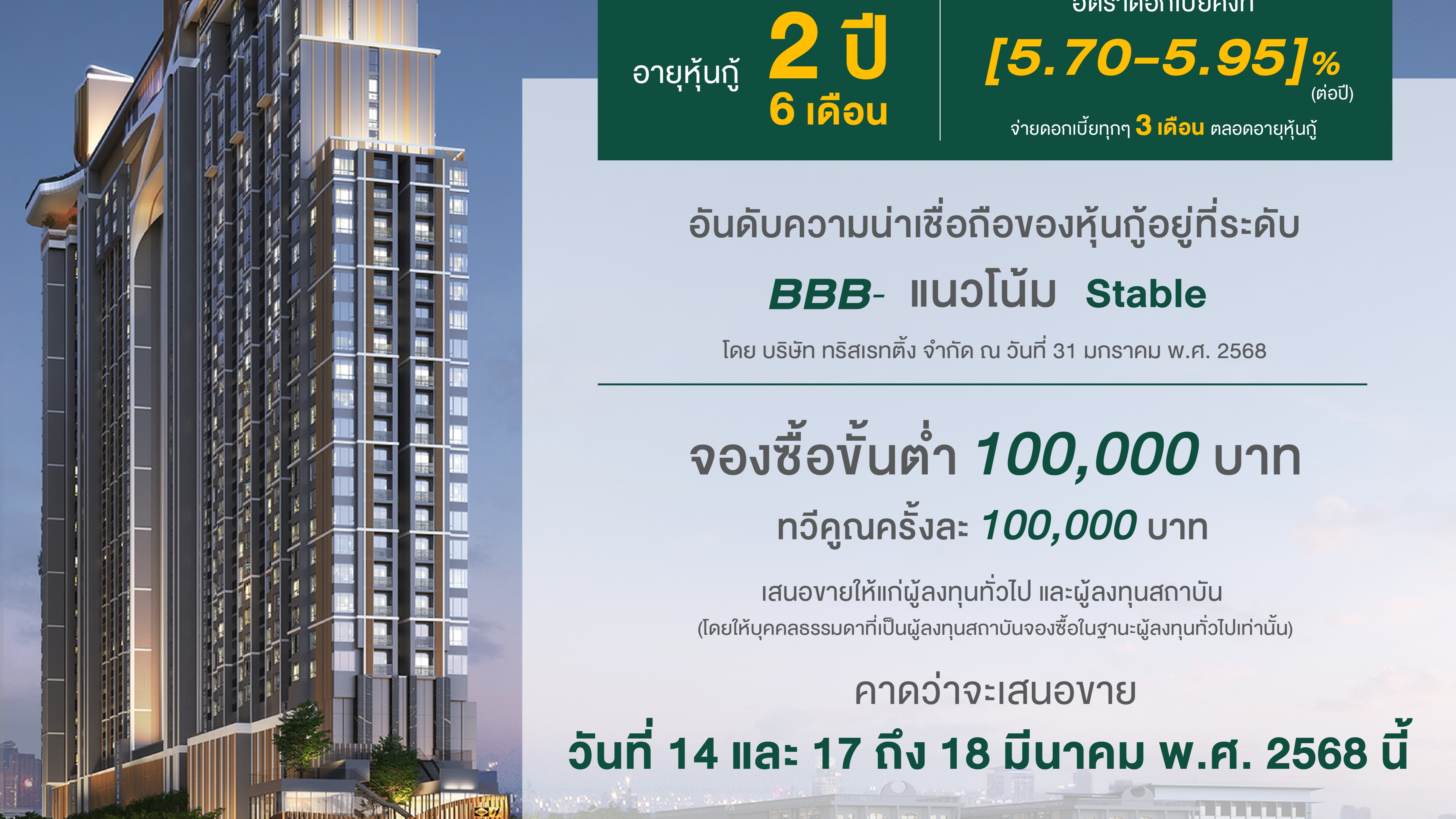 SENA เตรียมเสนอขายหุ้นกู้ชุดใหม่ เสริมความแข็งแกร่งและต่อยอดธุรกิจ ปี 2568
