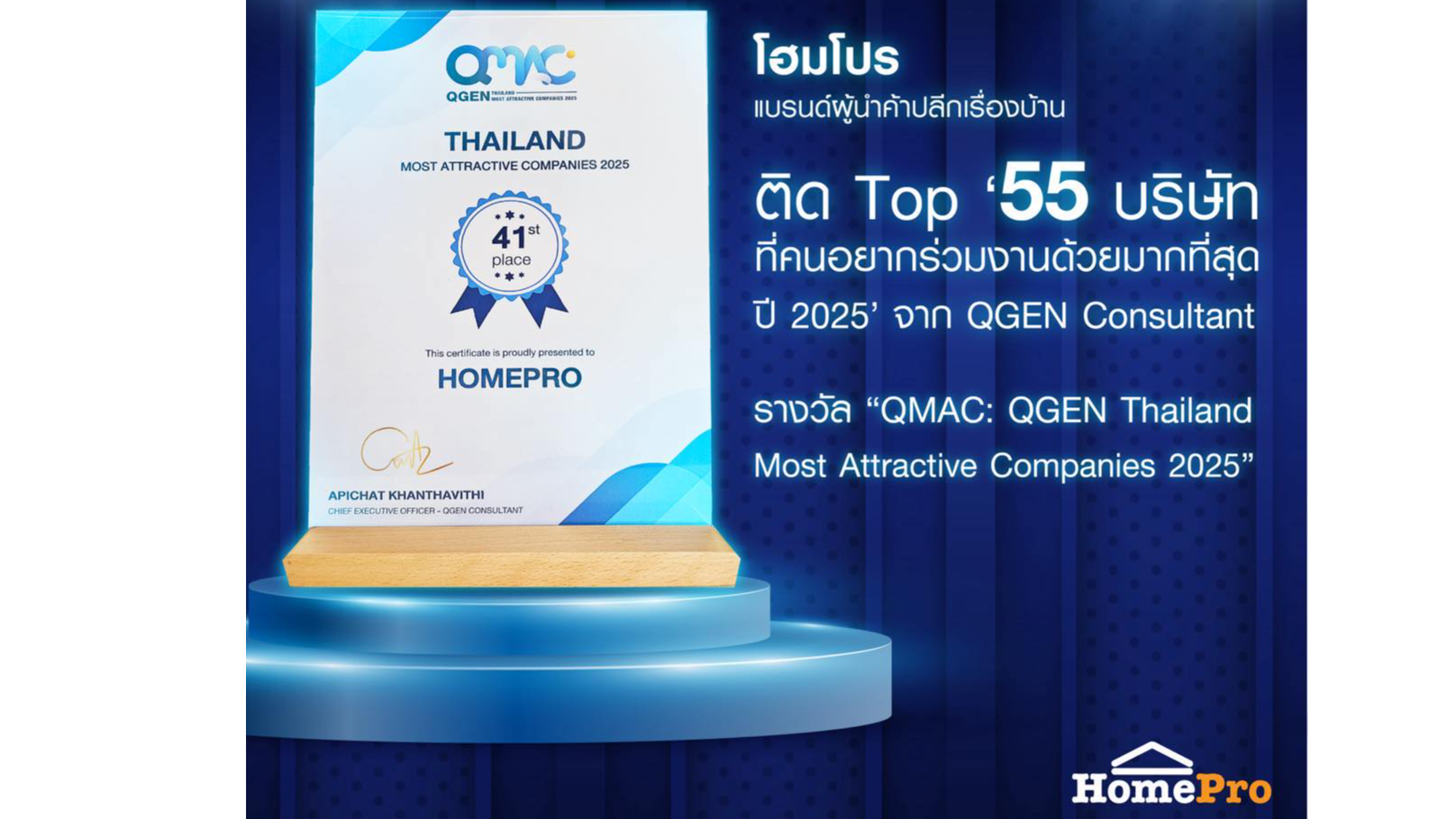 โฮมโปร ครองใจวัยทำงาน! ติด Top ‘55 บริษัทที่คนอยากร่วมงานด้วยมากที่สุด ปี 2025’ จาก QGEN Consultant