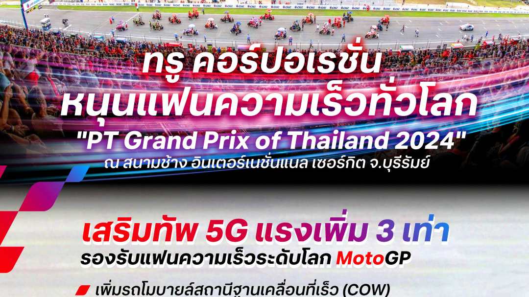 ทรู คอร์ปอเรชั่น หนุนแฟนความเร็วทั่วโลกรองรับงานระดับนานาชาติ "PT Grand Prix of Thailand 2024" จ.บุรีรัมย์ ด้วยความแรง 5G จัดเต็มเพิ่ม 3 เท่า