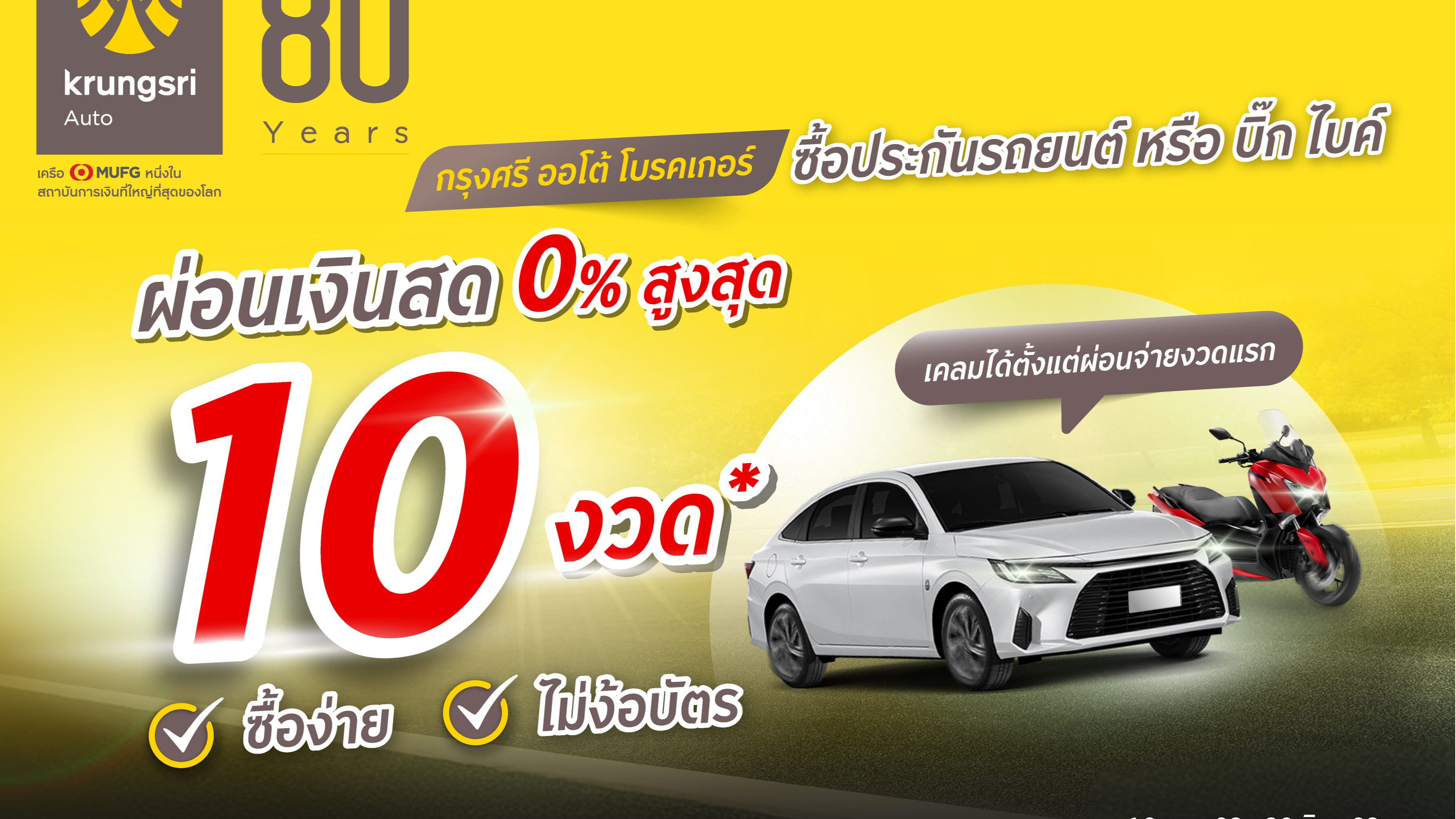 ซื้อประกันรถกับ ‘กรุงศรี ออโต้ โบรคเกอร์’ วันนี้ ชำระได้นาน 10 เดือน สะดวก ง่าย คุ้มครองตั้งแต่เริ่ม A advertisement for a car Description automatically generated