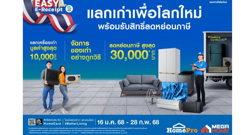 “แลกเก่าเพื่อโลกใหม่” ช้อปคุ้ม พร้อมลดหย่อนภาษี! ‘เปลี่ยนของเก่าเป็นความคุ้ม’ ผ่าน Easy E-Receipt ได้ที่โฮมโปร เมกาโฮม และออนไลน์