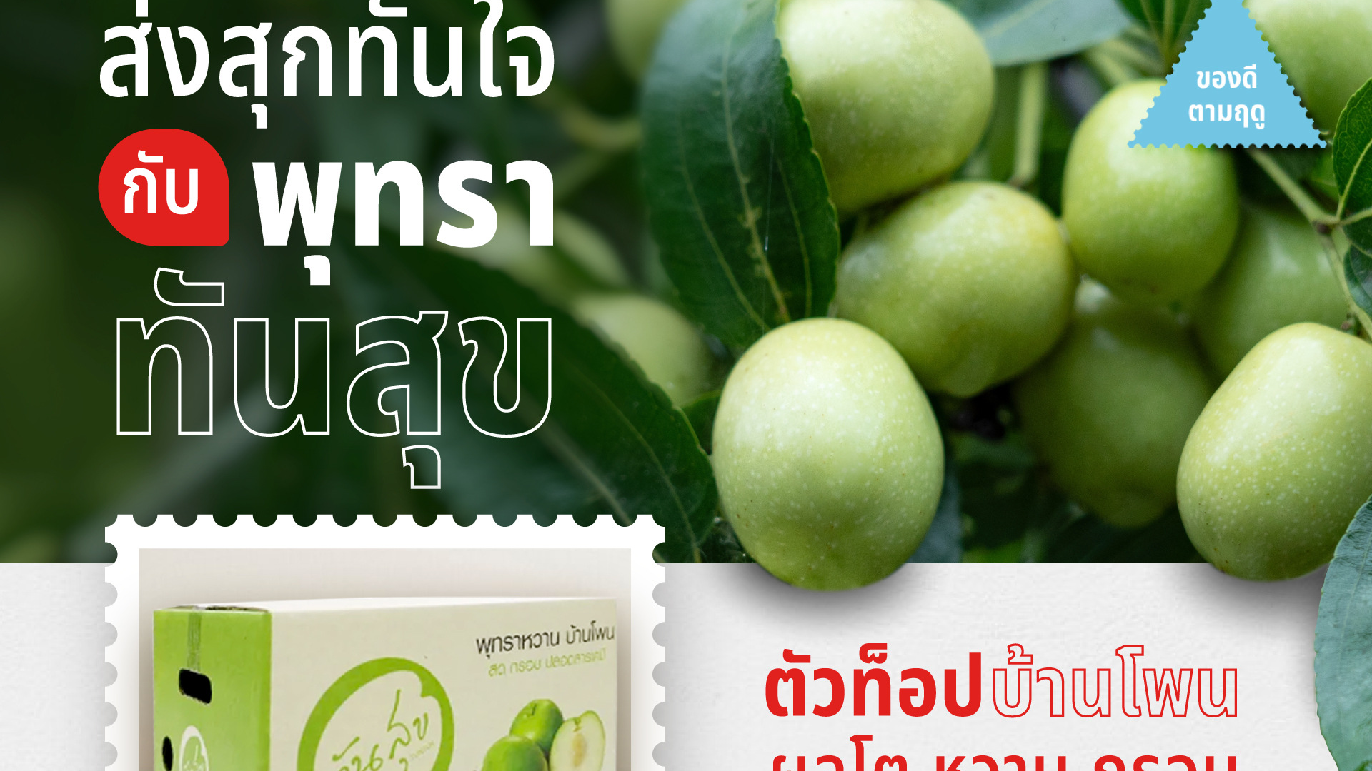 ไปรษณีย์ไทยส่งตรงของดีจากสวน “พุทรา ทันสุข” ผลไม้ตัวท็อปกาฬสินธุ์ หวาน กรอบระดับพรีเมียม ปลูกด้วยวิธีธรรมชาติ อุดหนุนได้ที่ไทยแลนด์โพสต์มาร์ท