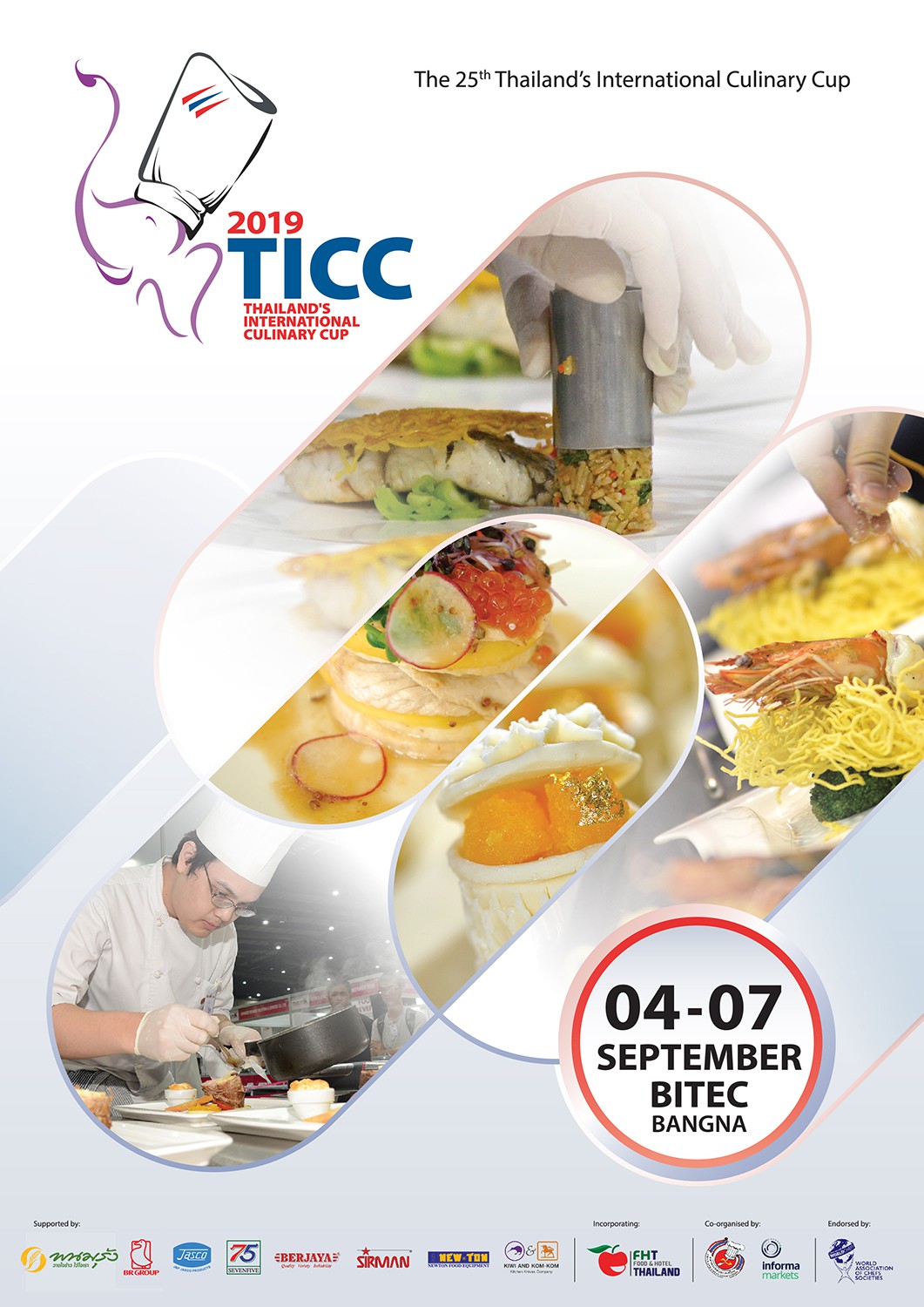 สมาคมเชฟประเทศไทย และ ยูบีเอ็ม เอเชีย เชิญผู้สนใจสมัครเข้าร่วมการแข่งขันสุดยอดเชฟ Thailand's International Culinary Cup (TICC) 2019 ครั้งที่ 25 ชิงถ้วยพระราชทานสมเด็จพระกนิษฐาธิราชเจ้า กรมสมเด็จพระเทพรัตนราชสุดาฯ สยามบรมราชกุมารี ในงานฟู้ดแอนด์โฮเทล ไทยแล