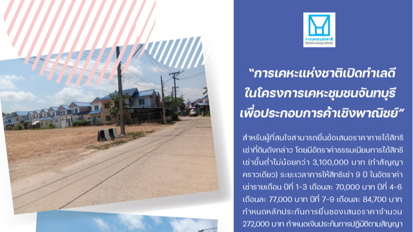 การเคหะแห่งชาติเปิดทำเลดีในโครงการเคหะชุมชนจันทบุรี เพื่อประกอบการค้าเชิงพาณิชย์