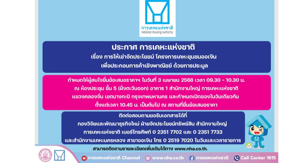 การเคหะแห่งชาติเปิดทางให้เอกชนเช่าที่ดิน ระยะยาว 15 ปี “โครงการเคหะชุมชนออเงิน”