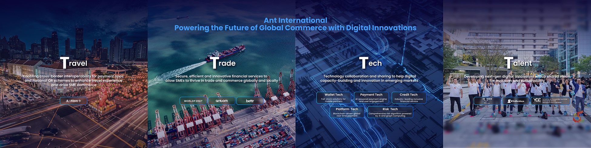 Ant International (แอนท์ อินเตอร์เนชันแนล) มีสำนักงานใหญ่อยู่ที่ประเทศสิงคโปร์ มุ่งขับเคลื่อนอนาคตของการค้าโลกด้วยนวัตกรรมดิจิทัลเพื่อทุกคนและทุกธุรกิจให้เติบโต เราทำงานร่วมกับพันธมิตรอย่างใกล้ชิดเพื่อสนับสนุนธุรกิจค้าปลีกทุกขนาดทั่วโลกให้บรรลุเป้าหมายการเติบโตผ่านโซลูชั่นบริการชำระเงินดิจิทัลและบริการทางการเงินหลากหลายที่ขับเคลื่อนด้วยเทคโนโลยี