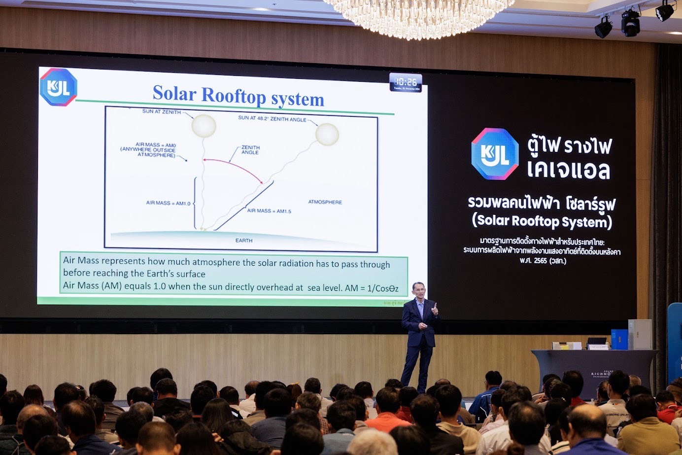 โดยกิจกรรมในครั้งนี้ ทางบริษัทฯ ได้รับเกียรติจากวิทยากรผู้ทรงคุณวุฒิ โดยอาจารย์สุจิ คอประเสิรฐศักดิ์ ประธานปรับปรุงมาตรฐานระบบผลิตไฟฟ้าจากพลังงานแสงอาทิตย์ ที่ติดตั้งบนหลังคา พ.ศ. 2565 (วสท.) ซึ่งได้รับกระแสตอบรับที่ดีจากผู้เข้าร่วมงานอย่างดีเยี่ยม งานดังกล่าวจัดขึ้น ณ ห้อง Diamond Ballroom ชั้น 4 โรงแรมแกรนด์ริชมอนด์ (ถ.รัตนาธิเบศร์) เมื่อวันที่ 5 พฤศจิกายน 2567 ที่ผ่านมา
