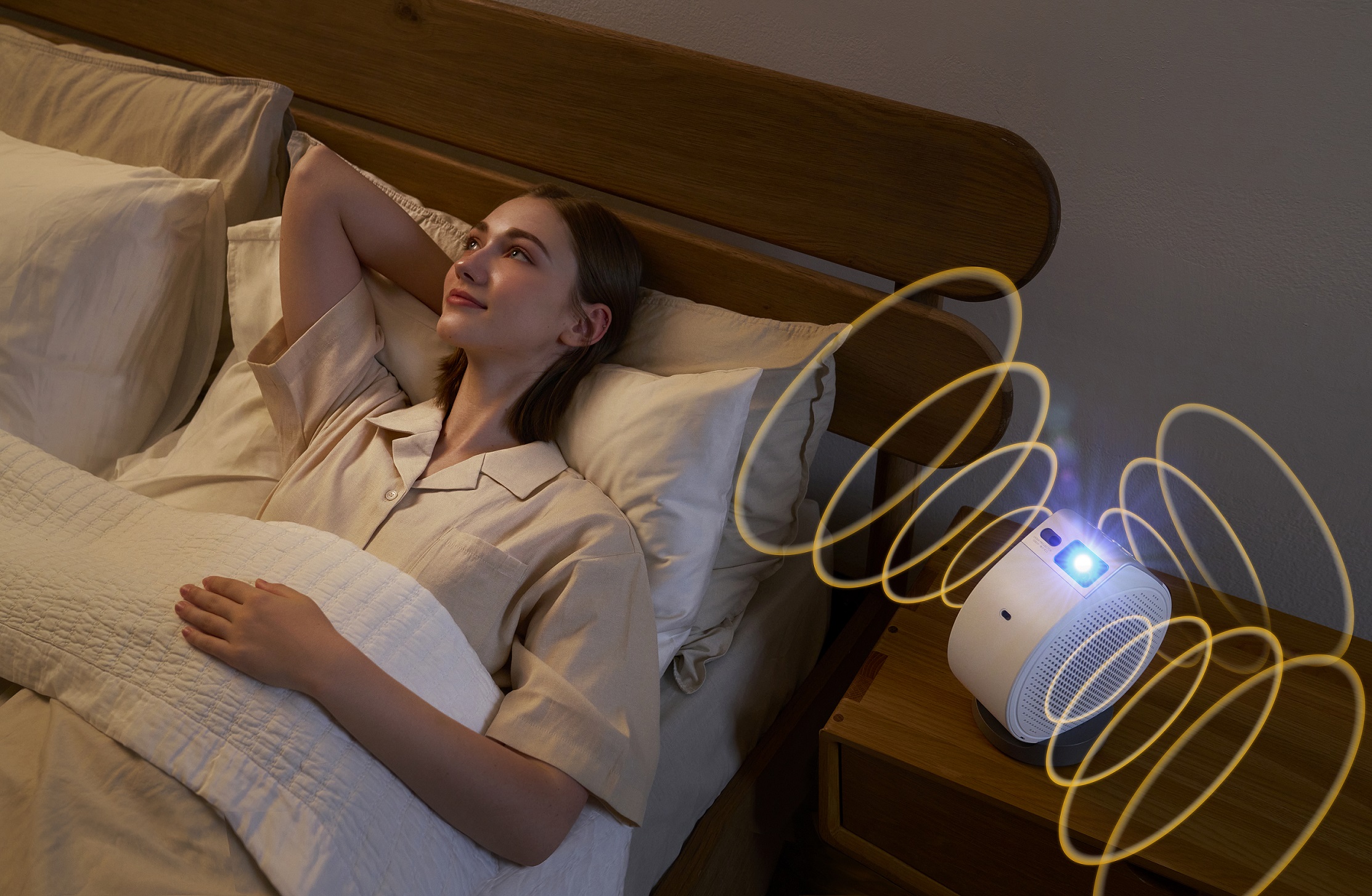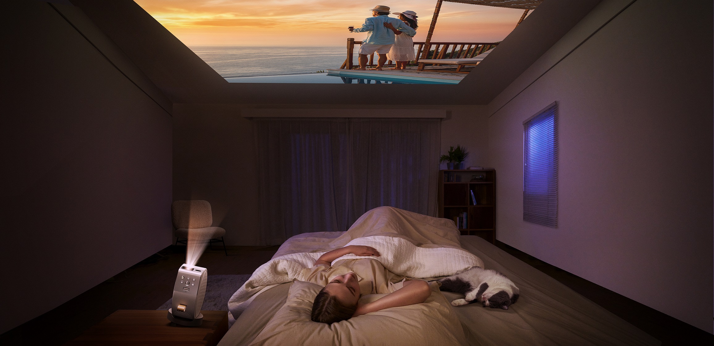 ด้วยความสามารถในการปรับมุมฉายทุกทิศทาง การฉายภาพข้างเตียงที่ล้ำสมัย และการปรับหน้าจออัตโนมัติ GV50 จะทำให้ผู้ชมได้นอนผ่อนคลายบนเตียง พร้อมเพลิดเพลินไปกับประสบการณ์การสตรีมที่สุดแสนสบายจากการชมความบันเทิงผ่านการฉายภาพขึ้นบนเพดานโดยตรง ให้ทุกองศาของการพักผ่อนไม่มีสะดุด