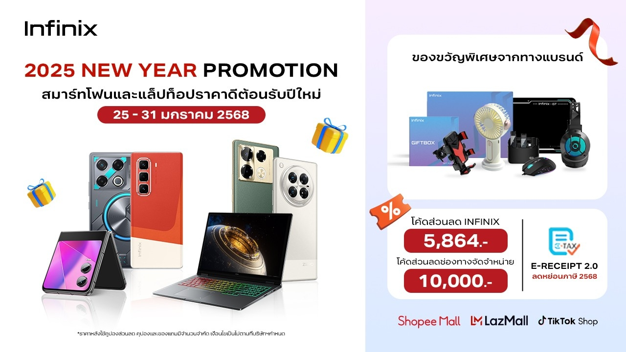 คุ้มสองต่อ! อินฟินิกซ์จัดโปรฯ “New Year Celebrate” ชวนช้อปสมาร์ทโฟนและแกดเจ็ตสุดฮิต รับส่วนลดสูงสุด 10,000 บาท พร้อมร่วม Easy E-Receipt 2568 ลดหย่อนภาษี