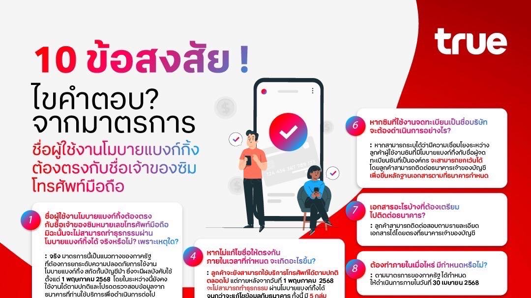 ทรู พร้อมสนับสนุนมาตรการภาครัฐ ยกระดับความปลอดภัยการใช้โมบายแบงก์กิ้ง ยืนยันอำนวยความสะดวกลูกค้าให้ใช้งานโมบายแบงก์กิ้งได้ต่อเนื่อง ตามนโยบายรัฐบาล