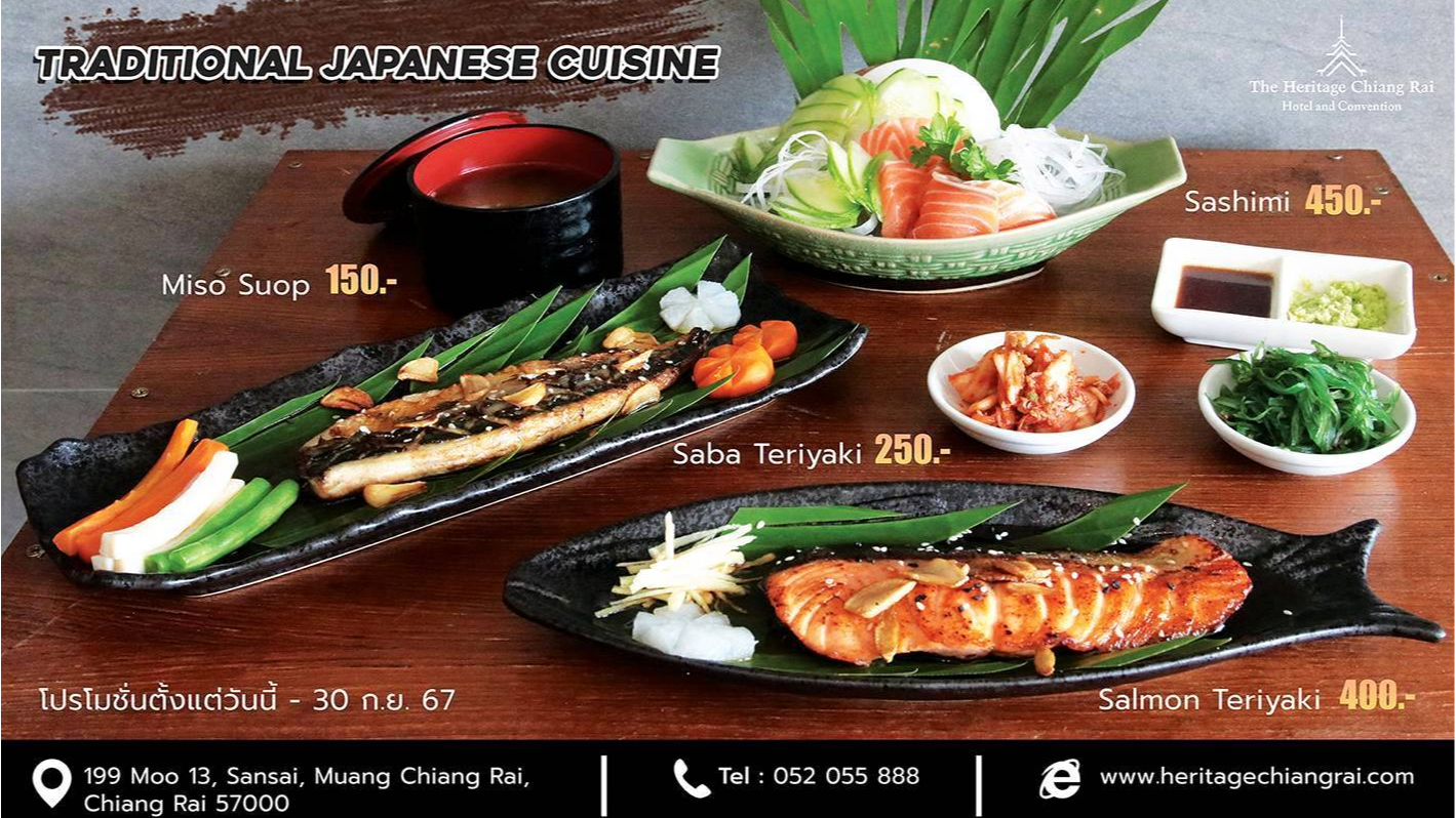 ดื่มด่ำบรรยากาศผสมผสานล้านนาทันสมัย พร้อมอาหารญี่ปุ่นแสนอร่อย... Special Traditional Japanese Cuisine ณ โรงแรมเฮอริเทจ เชียงราย โฮเทล แอนด์ คอนเวนชั่น